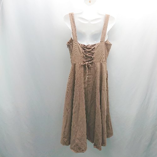 ◇ tocco closet サイドファスナー 肩紐調整不可 レースアップ ロング ワンピース サイズM ブラウン レディース E