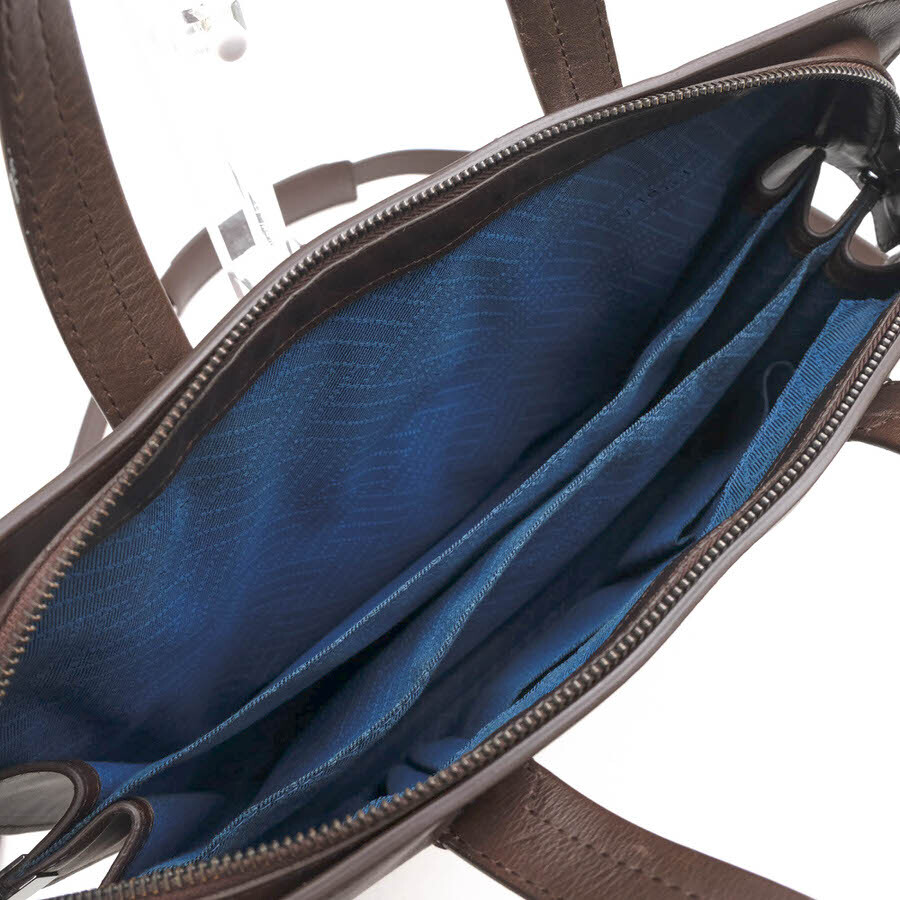 イタリア製のヴィンテージ加工を施したソフト牛革(ヴィッテロ ヴィンテージ)を素材に使用したフルラのブリーフケース「ゼウス」。フロントにオリジナルの留め金具がアクセントになっており、洗練されたビジネスマンを想定してデザインされたモデルで、エレガントながらも耐久性に優れた仕上がりが特徴です。バッグはファスナー開閉式で、内部には3つのコンパートメントがあり、そのうちの1つにはノートパソコンを収納するための専用ポケットが備わっています。また多数のポケットを備えており、効率的な収納が可能です。 |