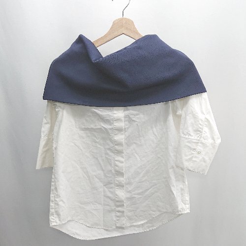 ◇ ⊂ AP STUDIO エーピーストゥディオ 切り替え 七分袖 カットソー サイズ表記なし ネイビー ホワイト レディース E