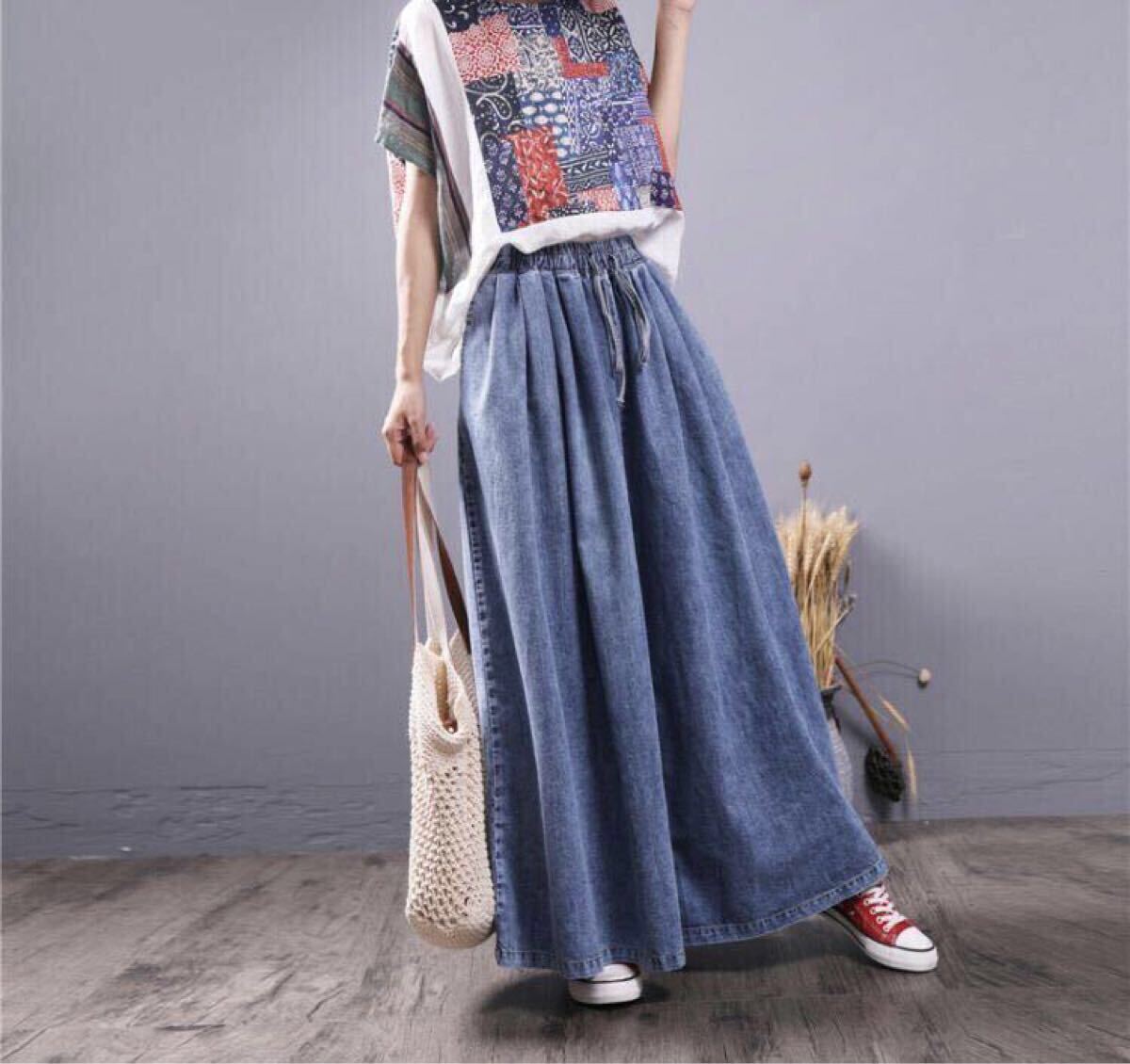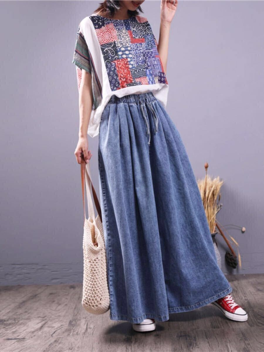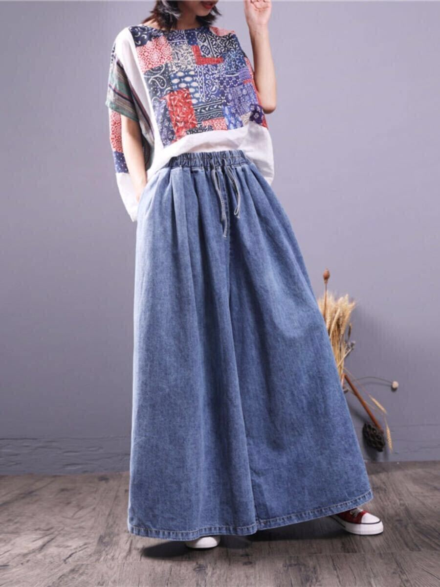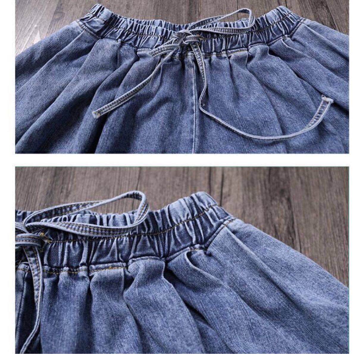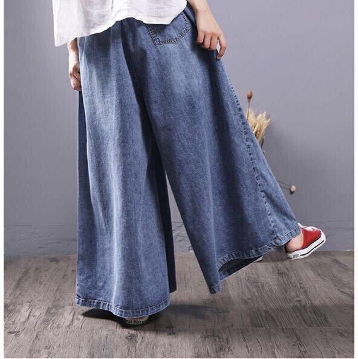ガウチョパンツ レディース デニム デニムパンツ ジーンズ ワイドパンツ デニム スカーチョ スカンツ 大きいサイズ 大人 楽ちん ウエストゴム ポケット付き 大きめ ゆったり 楽ちん 無地 春 秋 大人 おしゃれ LPFA002(M-2XL)