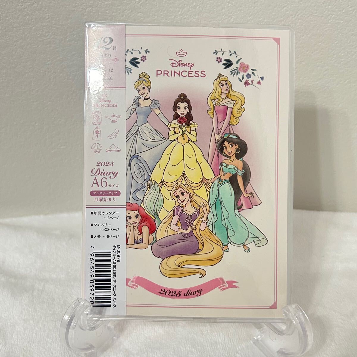 スケジュール帳 2025 A6 手帳 12月始まり 月曜始まり ディズニー ディズニープリンセス ジャスミン ラプンツェル アリエル ベル