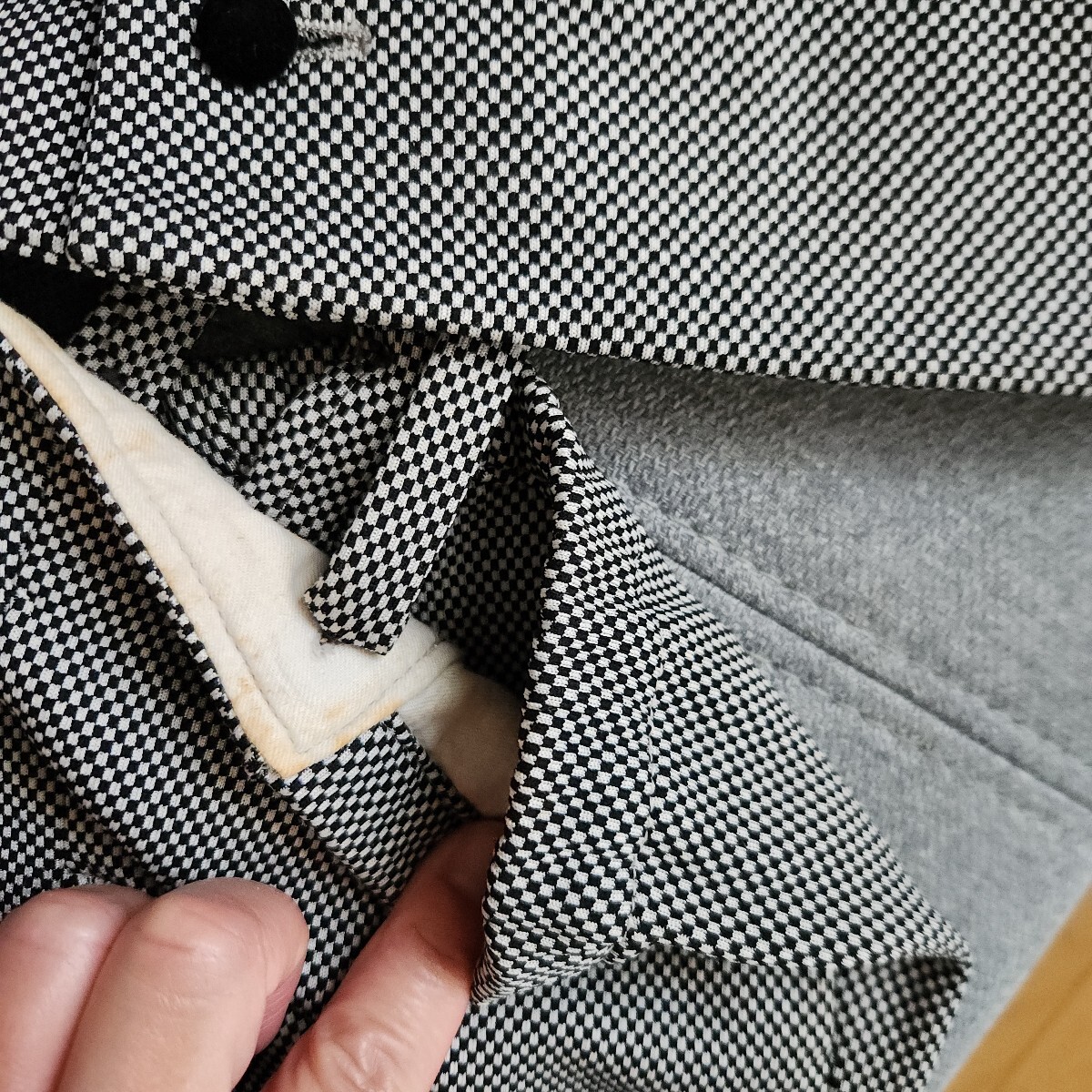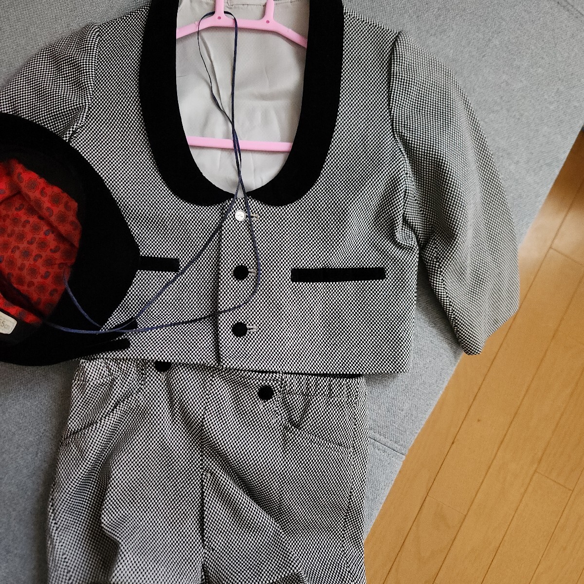 サイズは100センチです。写真にもある通り、シミや黄ばみがあります。帽子のゴムも、伸びてます。気にならない方いかがですか?