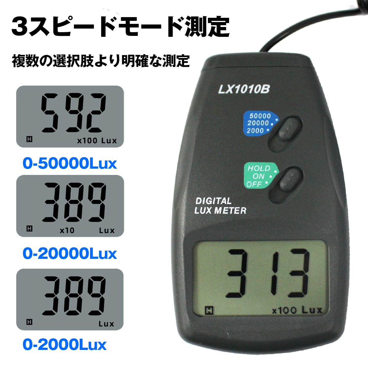 ◆計測範囲:0~50000Lux 1/×10/×100(3段階計測) 測定データホールド機能
