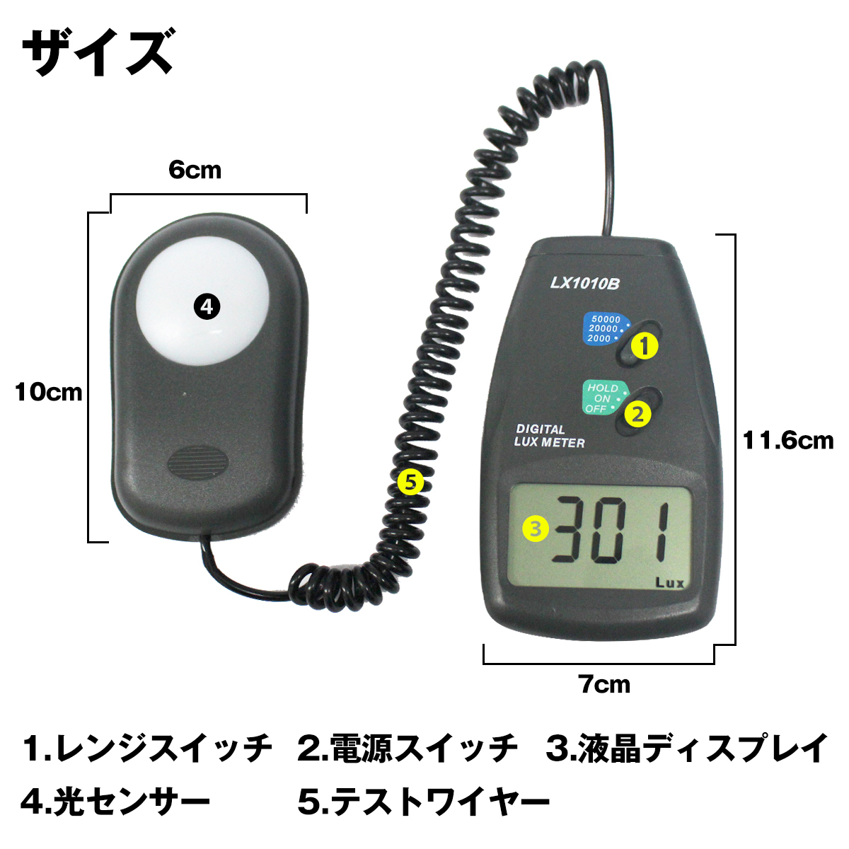 デジタル照度計 光度計 明るさ測定 照度測定器 コンパクトサイズ 室内 撮影 スタジオ 倉庫 事務所 照度確認 ルクスメーター