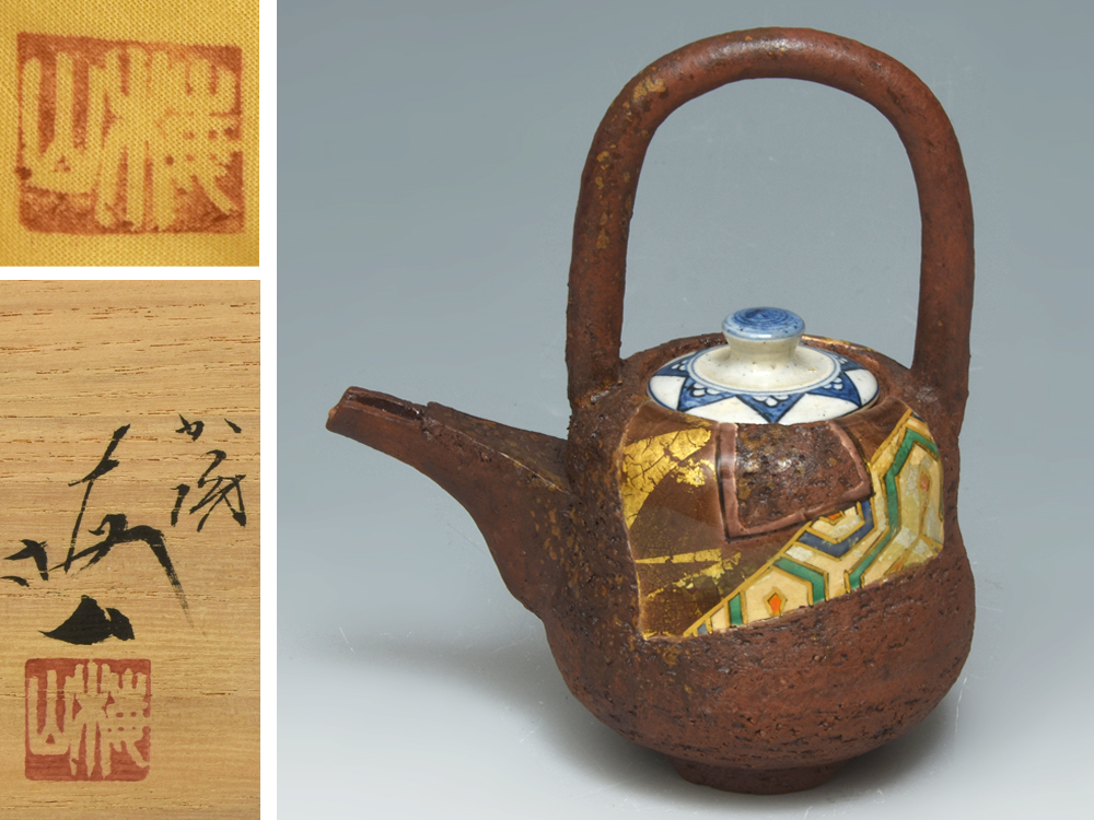 中村梅山 (造) 象嵌色絵 酒注 共箱 共布 九谷 銚子 酒器 会席 懐石道具 茶道具 陶磁器 |