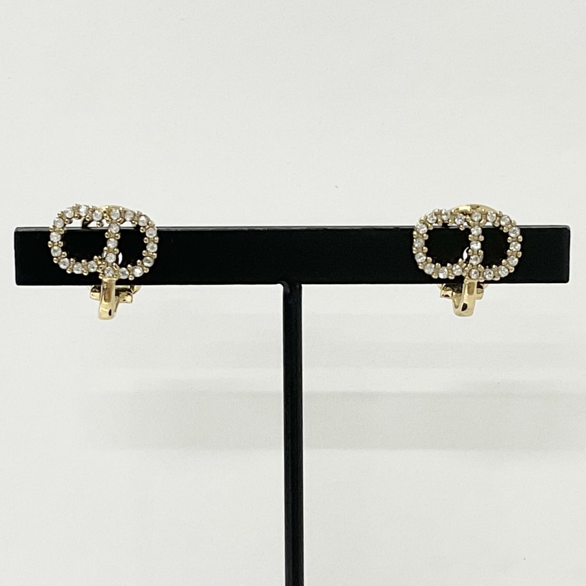 クリスチャンディオール Petit CD クリップオン スタッドイヤリング ラインストーン ゴールド