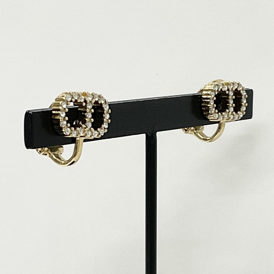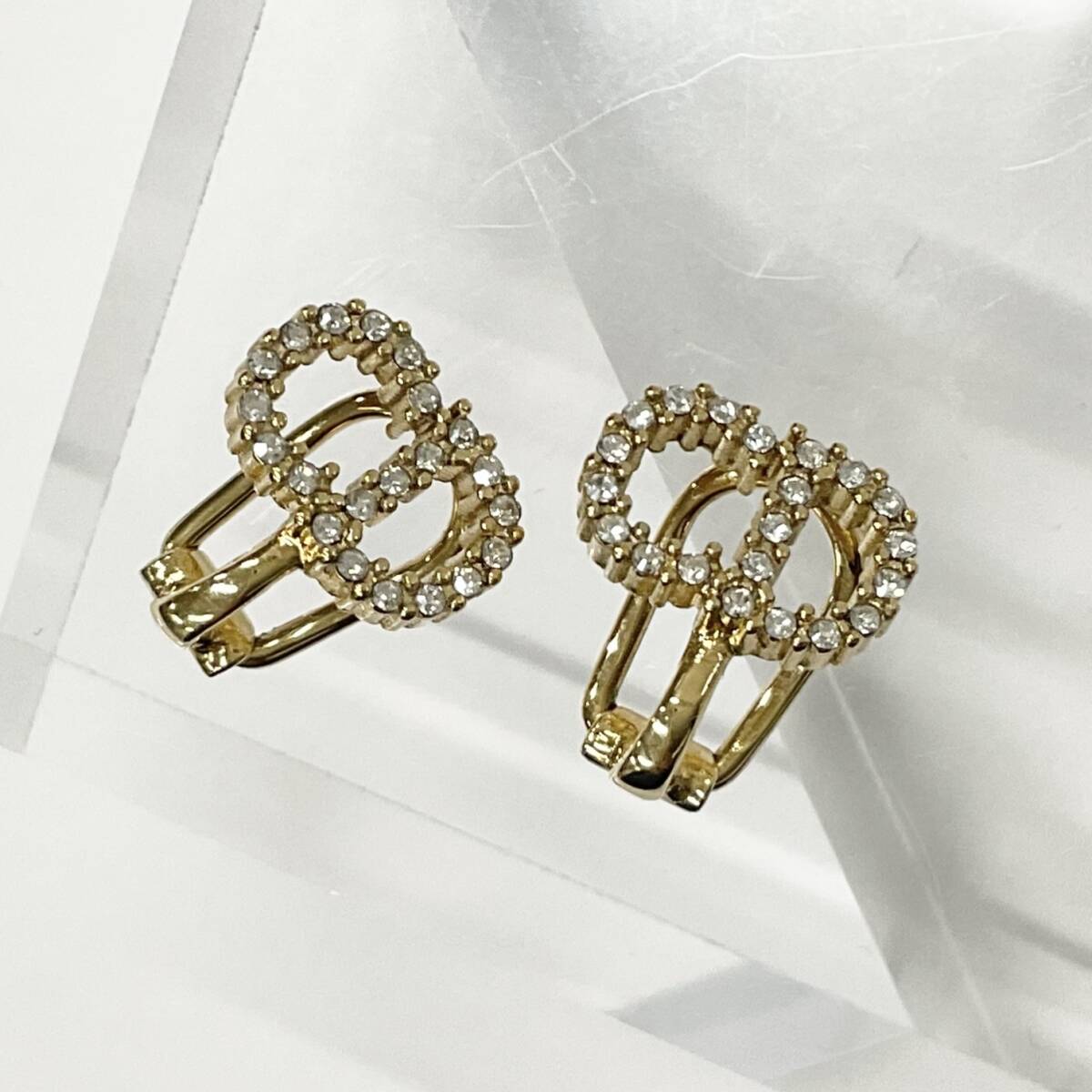 M11039 クリスチャンディオール Petit CD クリップオン スタッドイヤリング ラインストーン ゴールド