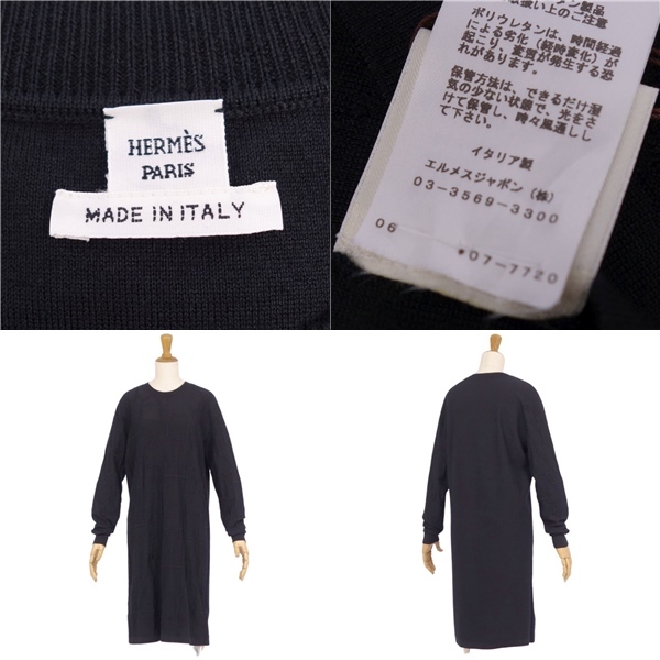 | 未使用 エルメス HERMES 20AW ニット ワンピース セーター 長袖 総柄 シルク カシミヤ トップス レディース 36(S) |