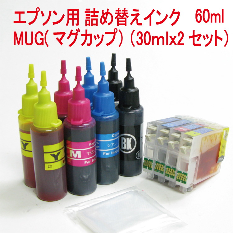 エプソンMUGマグカップ用★互換カートリッジと詰め替えインク4色セット★残量表示OK★インク増量タイプ ZCEMUG4X60KT | |
