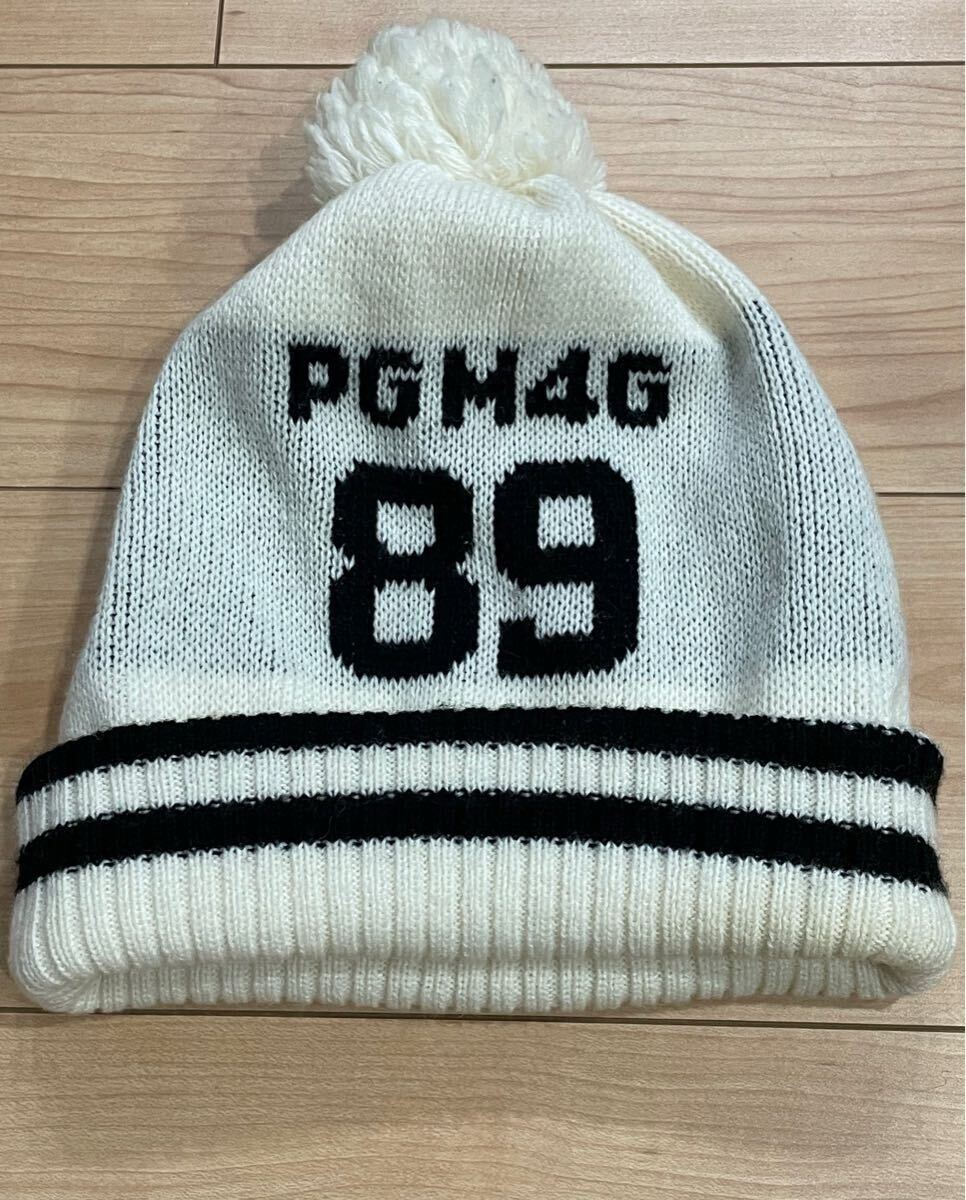 冬本番! PEARLY GATES パーリーゲイツ PGM4G ニット帽 帽子 ゴルフウェア レディース 白 ホワイト Fサイズ ◯ 新規×
