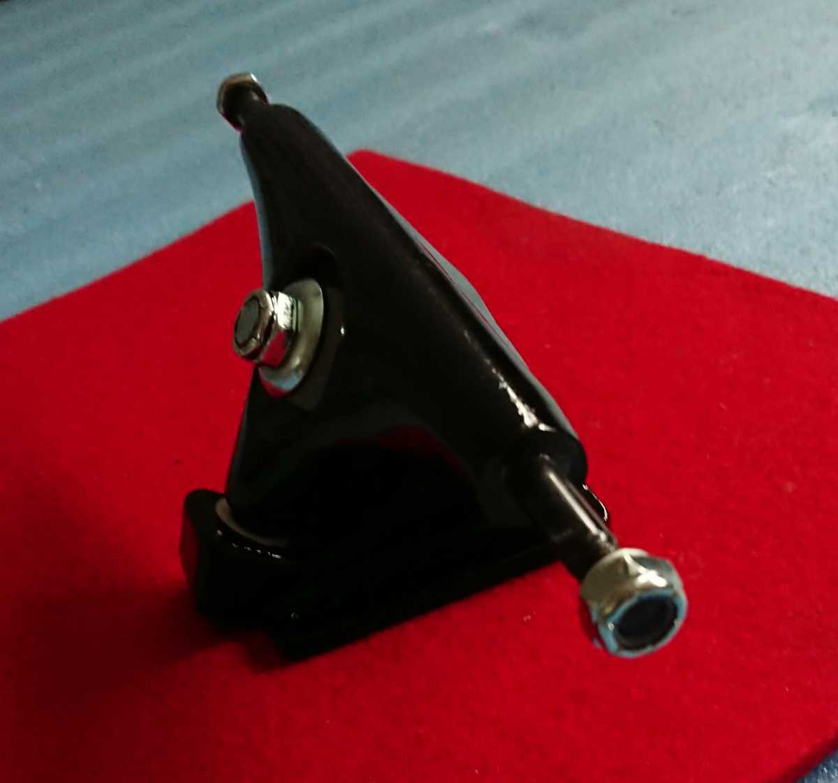 ■板をカスタマイズする上で 今流行はフロントにスラスターを搭載した時に リア(後)にカービングトラックを取り付けるのが流行っています 特フロントトラックの旋回がスムーズになる分 それに対応する後ろのトラックの反応がカービングトラックの方が旋回角度が広い分スムーズに反応してくれます(出品写真参考)
