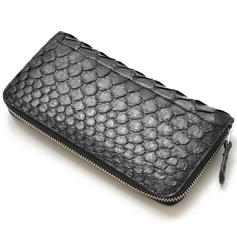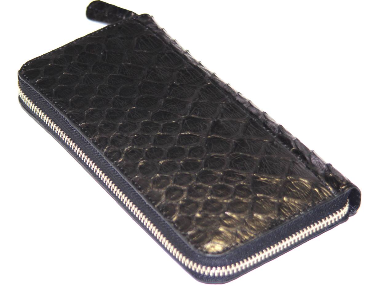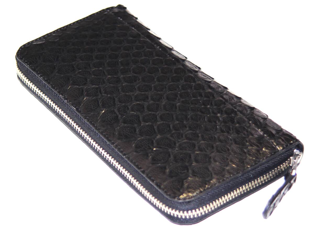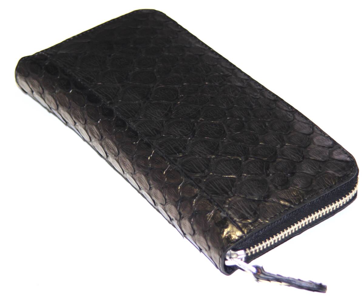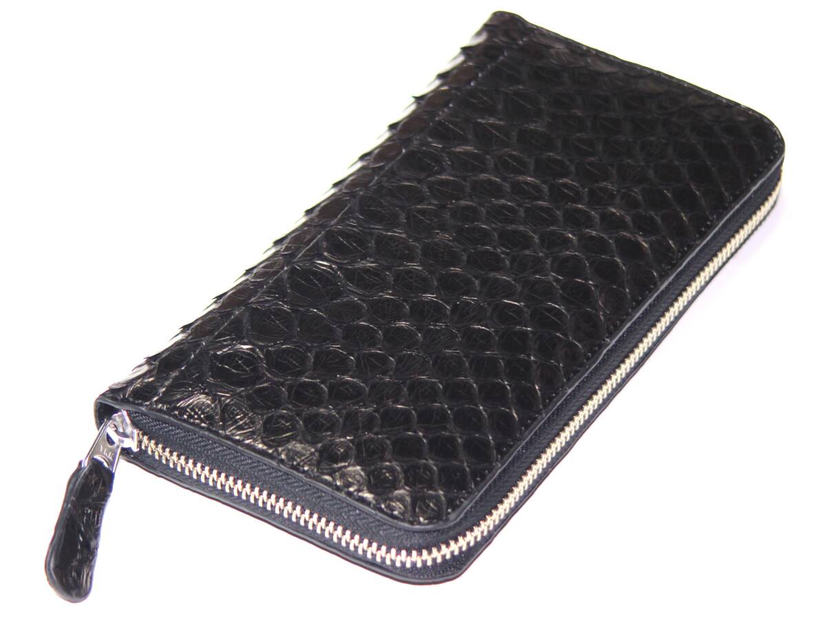 【物価高騰支援タイムセール】【送料込み】【期間限定】【新品】【税込み】本パイソン☆大判ウロコ☆シングル☆ラウンドロングウォレット黒