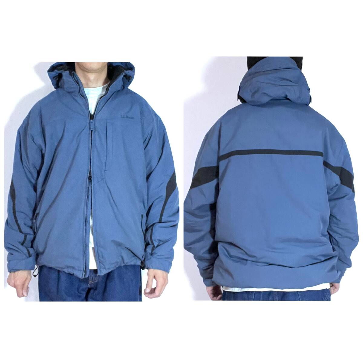 00s 好配色 L.L.Bean エルエルビーン 2WAYジップアップ 切替し 中綿ナイロンジャケット 山タグ メンズL スモークブルー ブラック v24123037