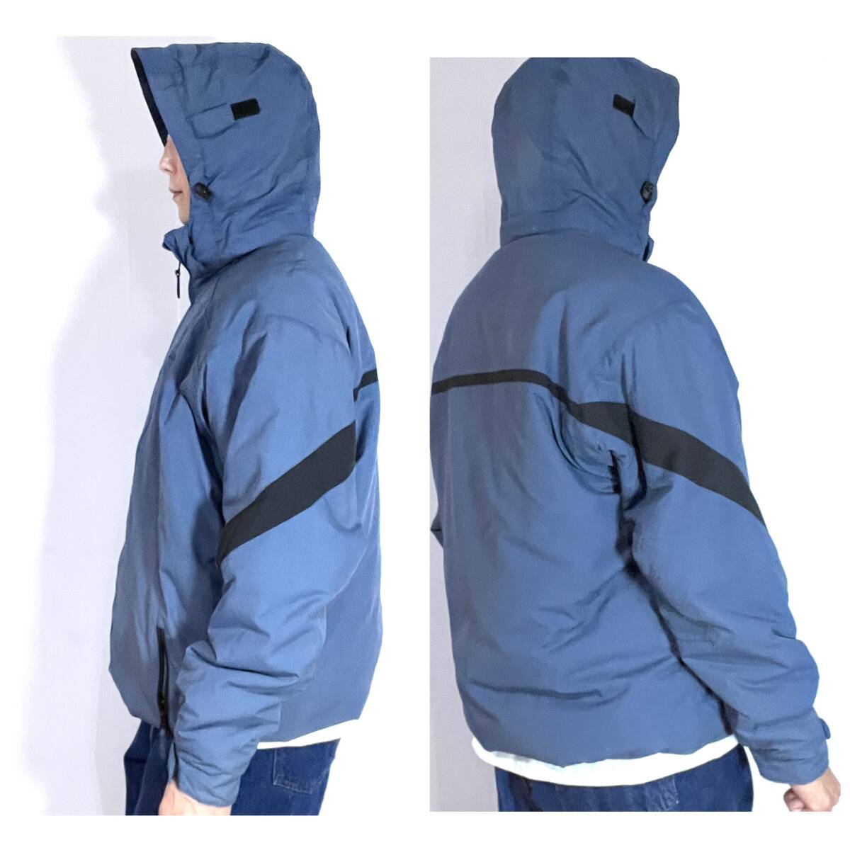 ・ファスナーで取り外し可能なフードに高めのネック、胸のワンポイント刺繍ロゴ、YKKジップWジップ、裾のドローコードで短丈にもできシルエット調整可能、ポケット表3裏1