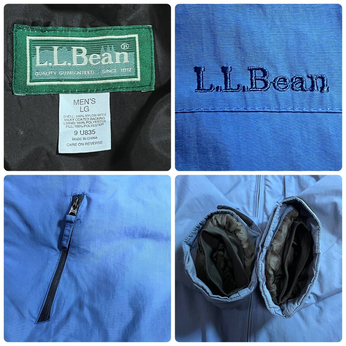 00s L.L.Bean エルエルビーン ワンポイント 刺繍ロゴ 中綿入り フード 2WAY ジップアップ 切替し ナイロンジャケット マウンテンパーカー マンパ アウター 2000年代 山タグ トップス 防寒 アウトドアウェア MEN'S メンズ
