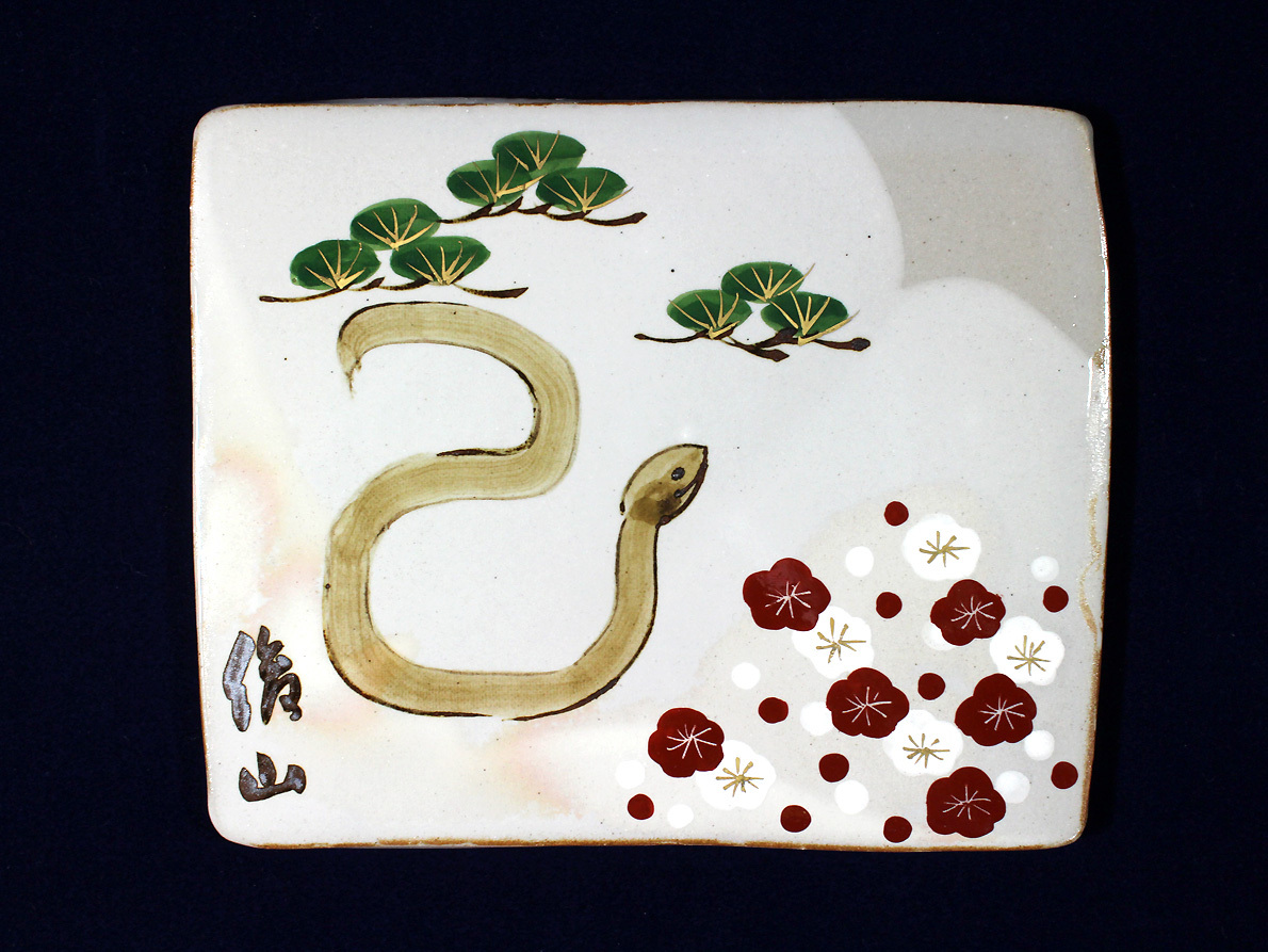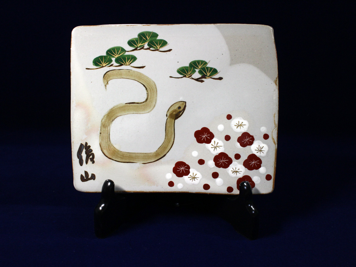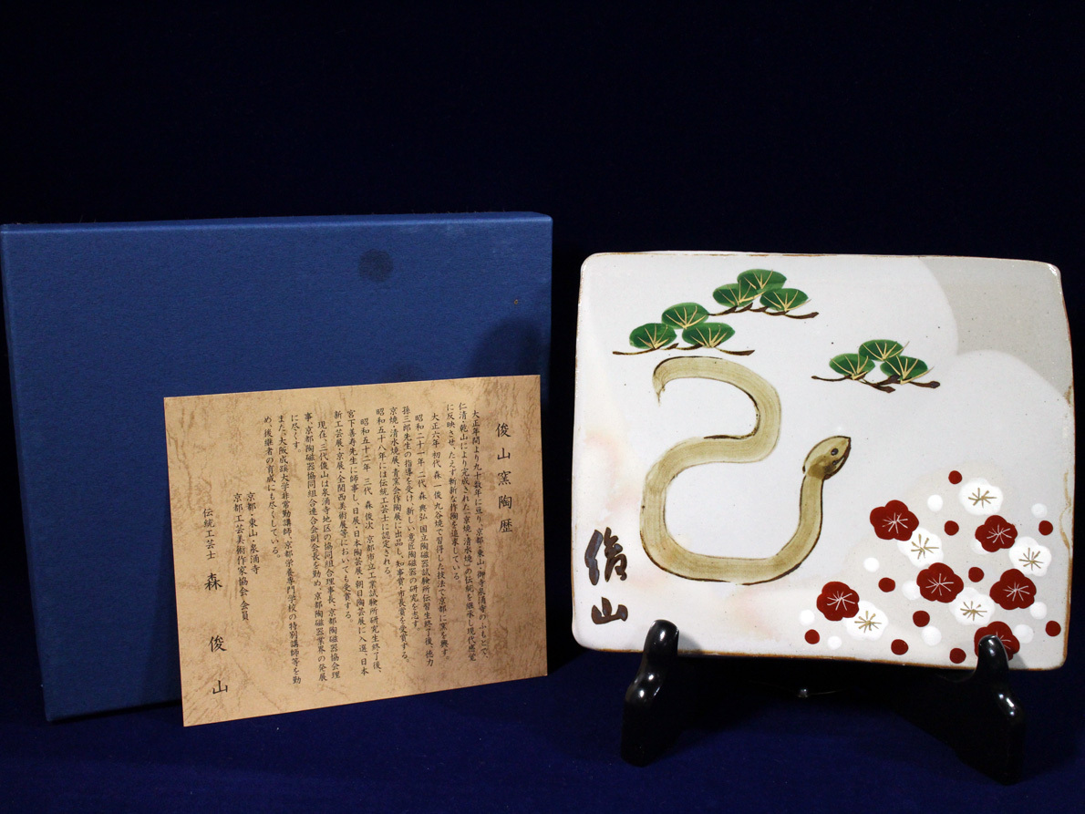 ◎[品名]森俊山・京焼・清水焼[干支・巳・白蛇・陶板](俊山窯・三代目)。
