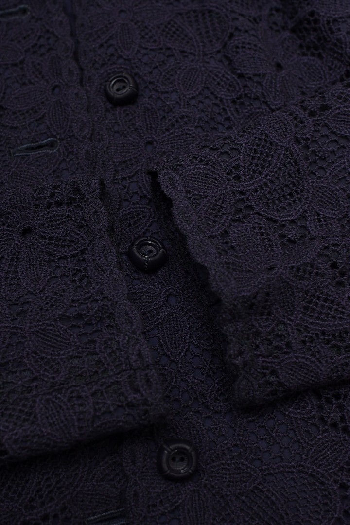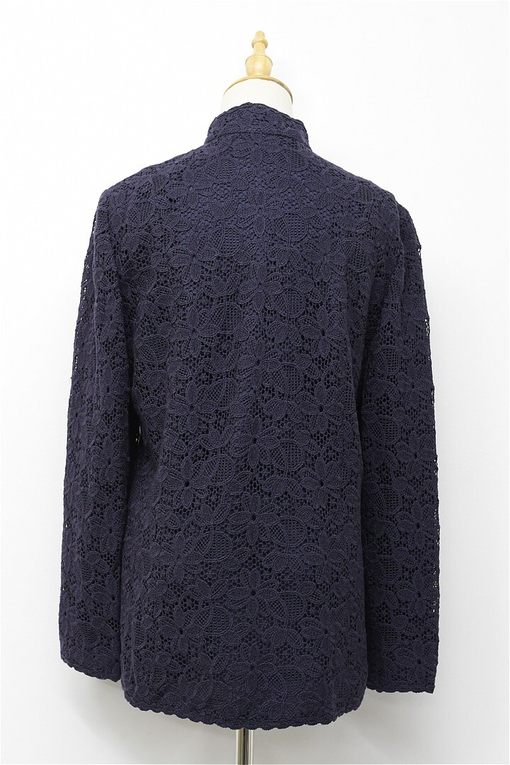M422/美品 Leilian レースジャケット スタンドカラー 総柄 花柄 総裏 9 M 紫 春秋 日本製