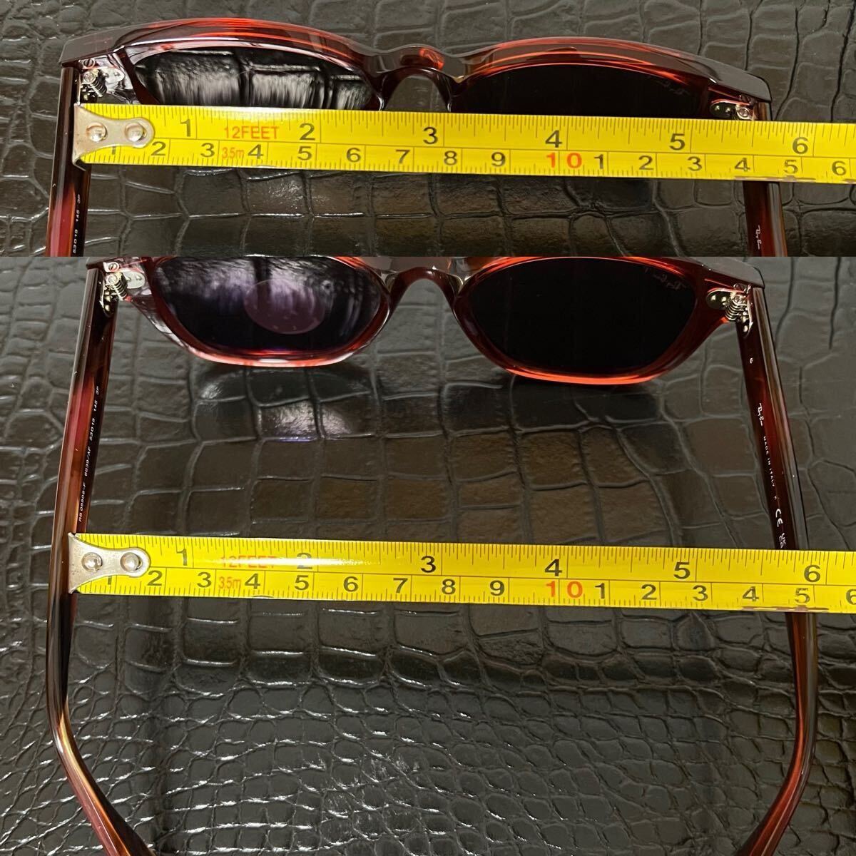 写真での採寸のとおり、横幅は前部分が約14.3センチです。後ろ部分が約14.8センチです。お持ちのメガネのサイズがそれから1センチ前後のサイズ感であればおそらく着用いただけます。