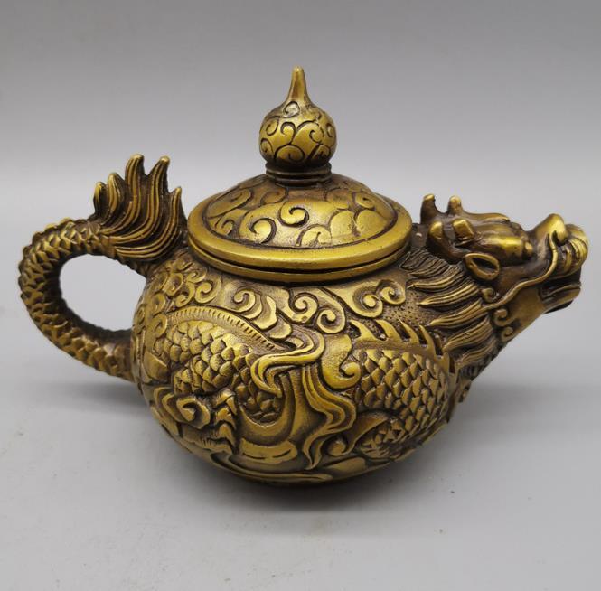 「レトロな銅器 蛇口デザインのやかん細工 置物 ハンドルポット 銅製」