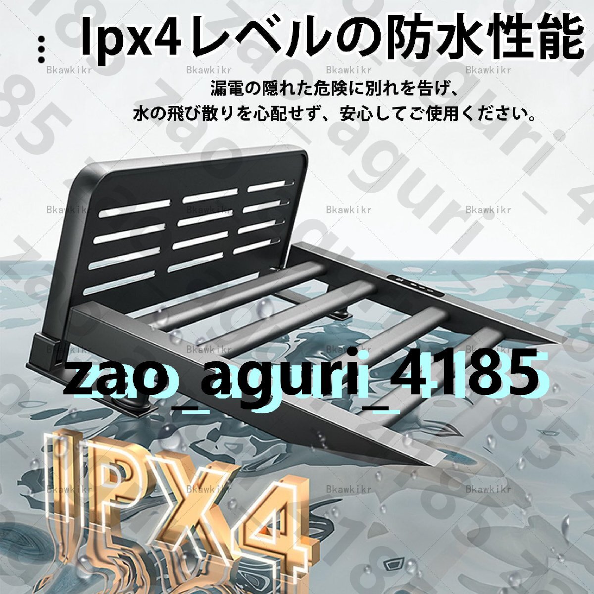 IPX4防水仕様で安心使用、IPX4防水性能を備え、漏電リスクを防ぎ、水しぶきや湿気の多い環境でも安全に使用可能です。電気タオル掛け