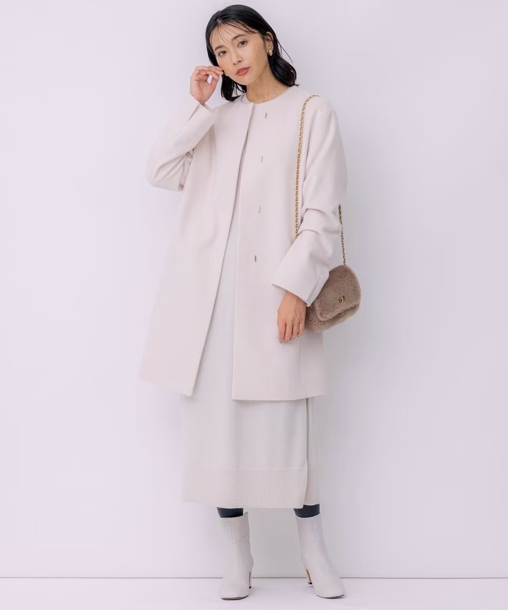 新品23区★ウールカシミヤビーバー ノーカラー コート