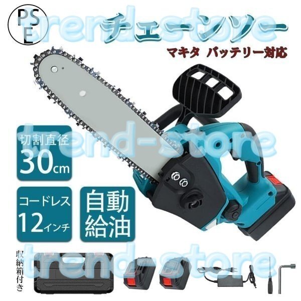 12インチ充電式チェーンソー コードレス マキタ 30cm切段 チェーンとバッテリー付き 収納ボックス 軽量 強力 枝切り 伐採 WJGJ309