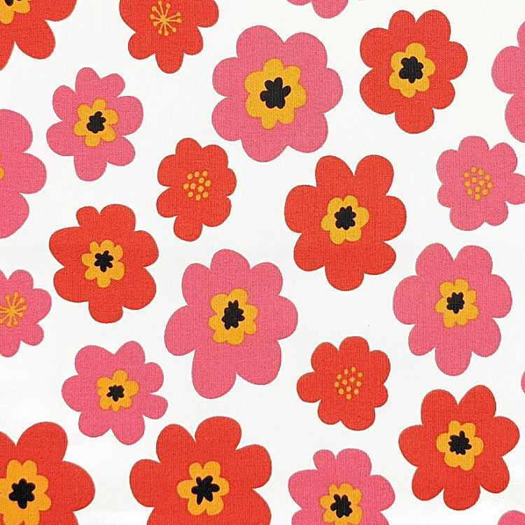 はし袋・大(25cm×6cm)【北欧風 ポップフラワー柄 ホワイト×レッド】箸袋 箸入れ はし入れ マイ箸 箸ケース ハブラシ入れ 細長巾着 花柄