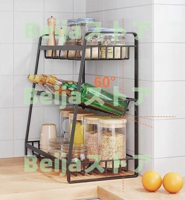 調味料ラック 3段 スパイスラック 調味料収納ラック 収納 キッチン 調味料収納 シンクサイドラック カウンター 台所デスクトップ ブラック