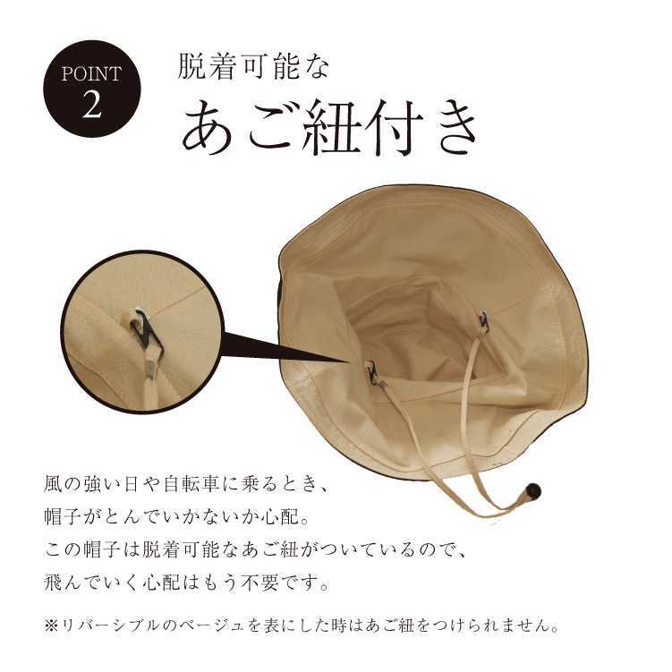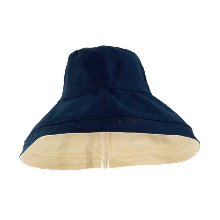レディース つば広 帽子 UVカット あご紐付き ネイビー×ベージュ リバーシブル つば広帽子 ワイヤー入り 紫外線対策 暑さ対策 アウトドア