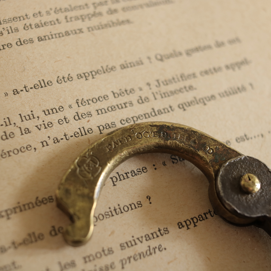 【真鍮 刻印 1896年 Y&T】フランスアンティーク パドロック 南京錠 熊鍵 ドアロック ラッチ ロック インダストリアル 扉 北欧 鍵 key