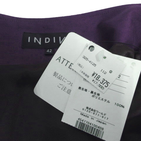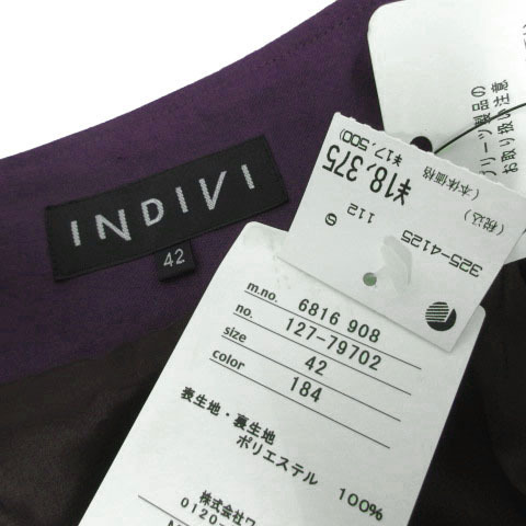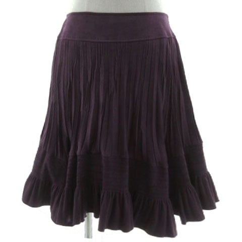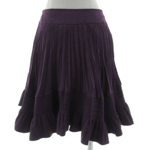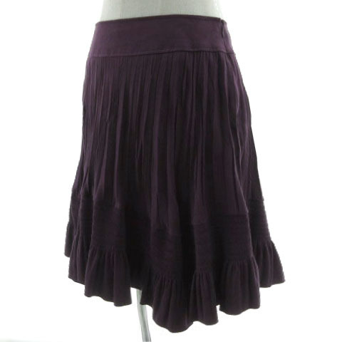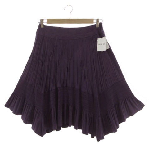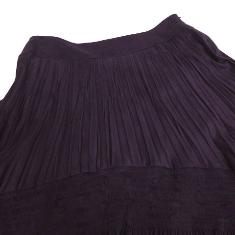 未使用品 インディヴィ INDIVI スカート プリーツ ペプラム フレア ミディ丈 スウェード調 パープル 紫 42 レディース