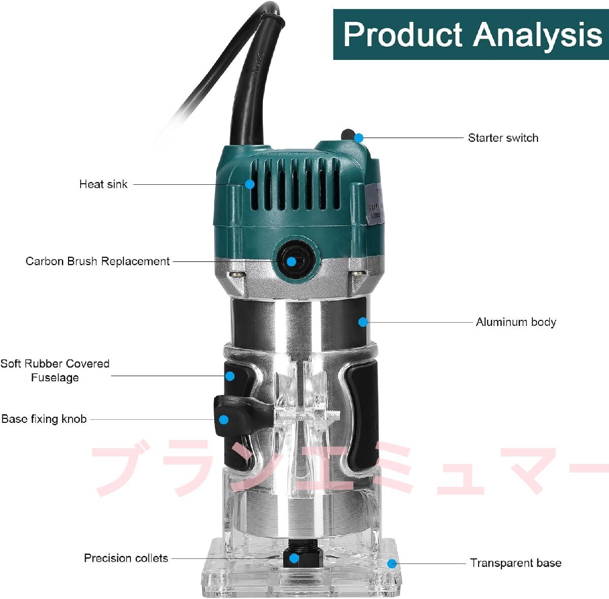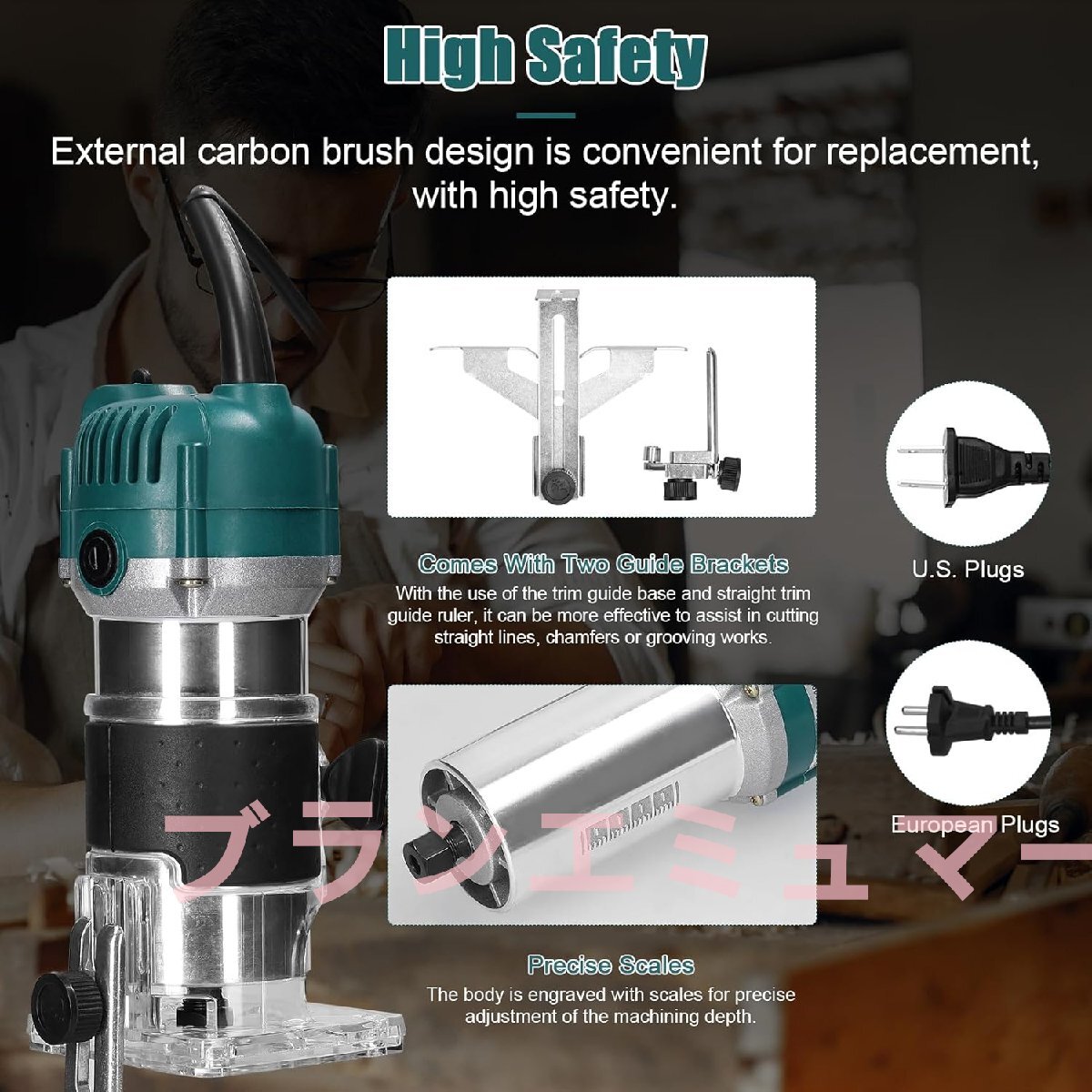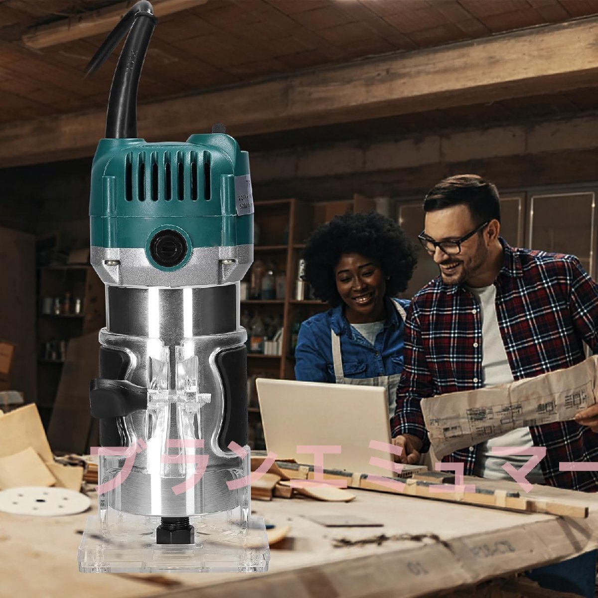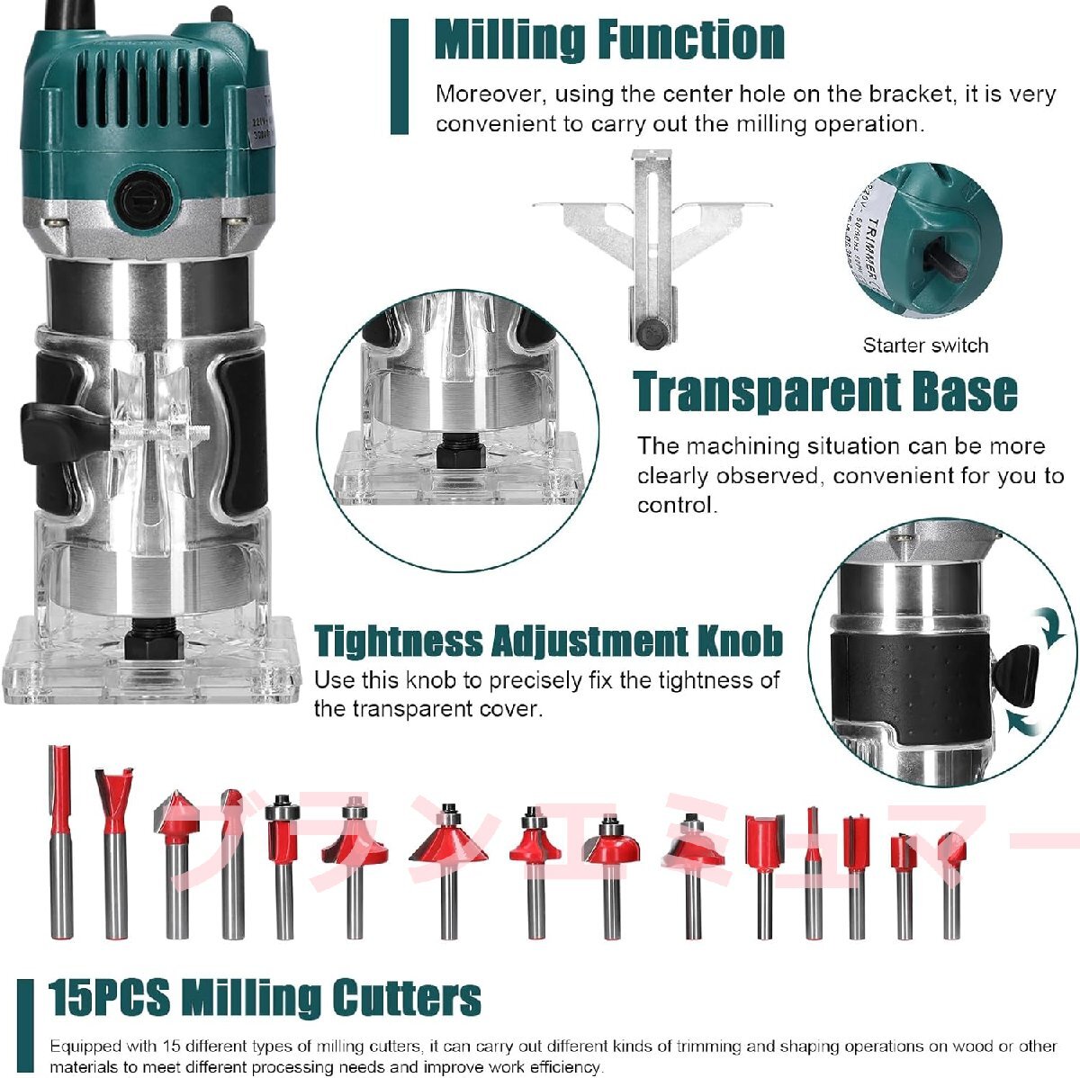 電動トリマー多機能木材フライストリミングトリミング彫刻スロッティングマシン多用途木工ルーター電動工具15個のフライスカッター付き