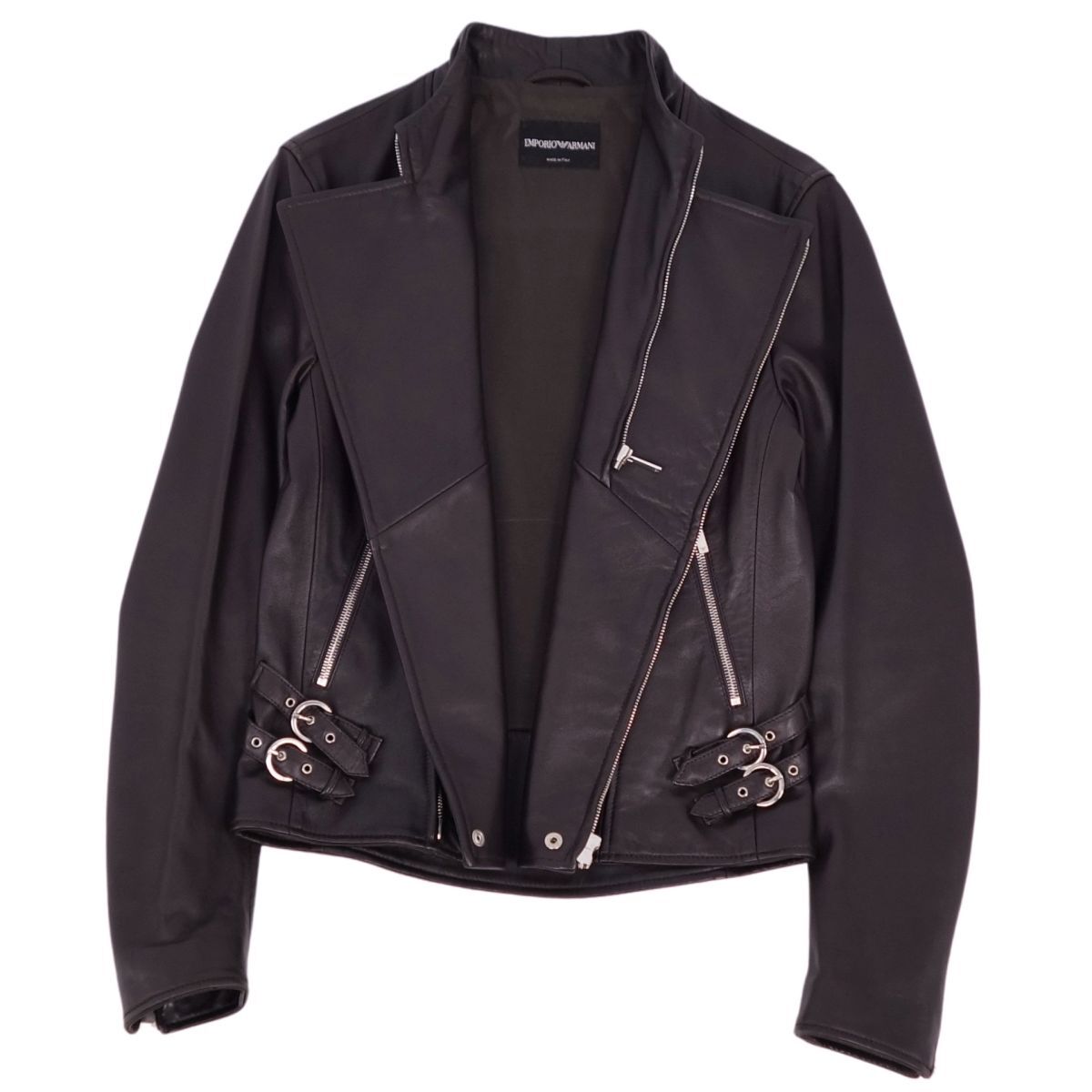 | 美品 エンポリオアルマーニ EMPORIO ARMANI レザージャケット ダブルライダース ラムレザー アウター レディース 44(S) |