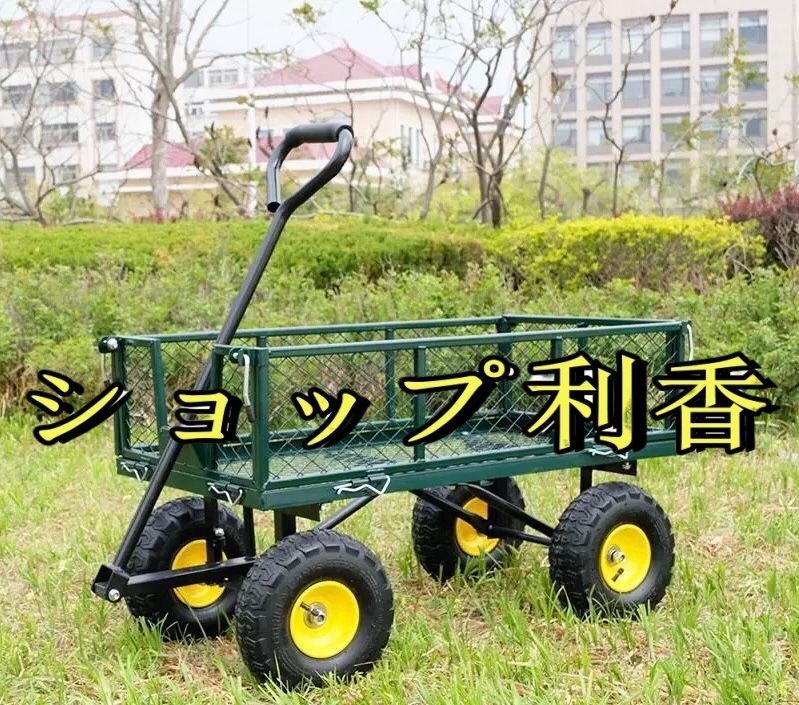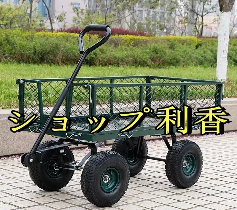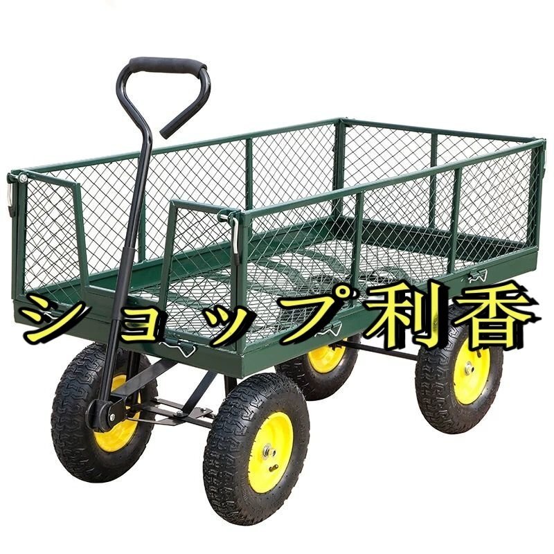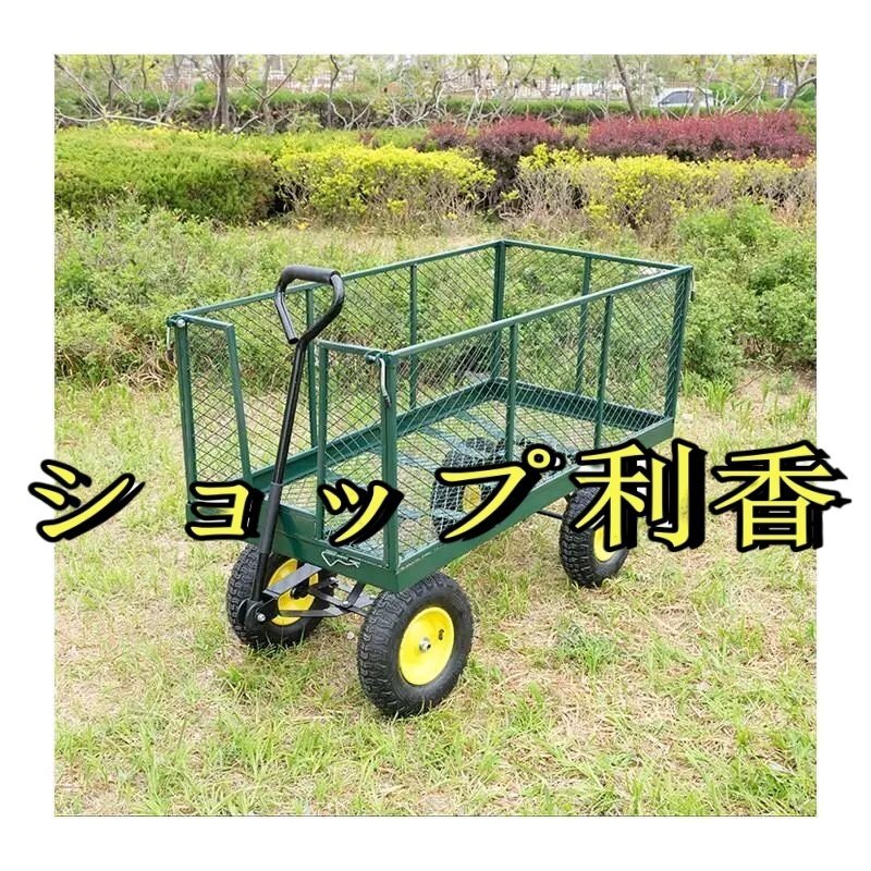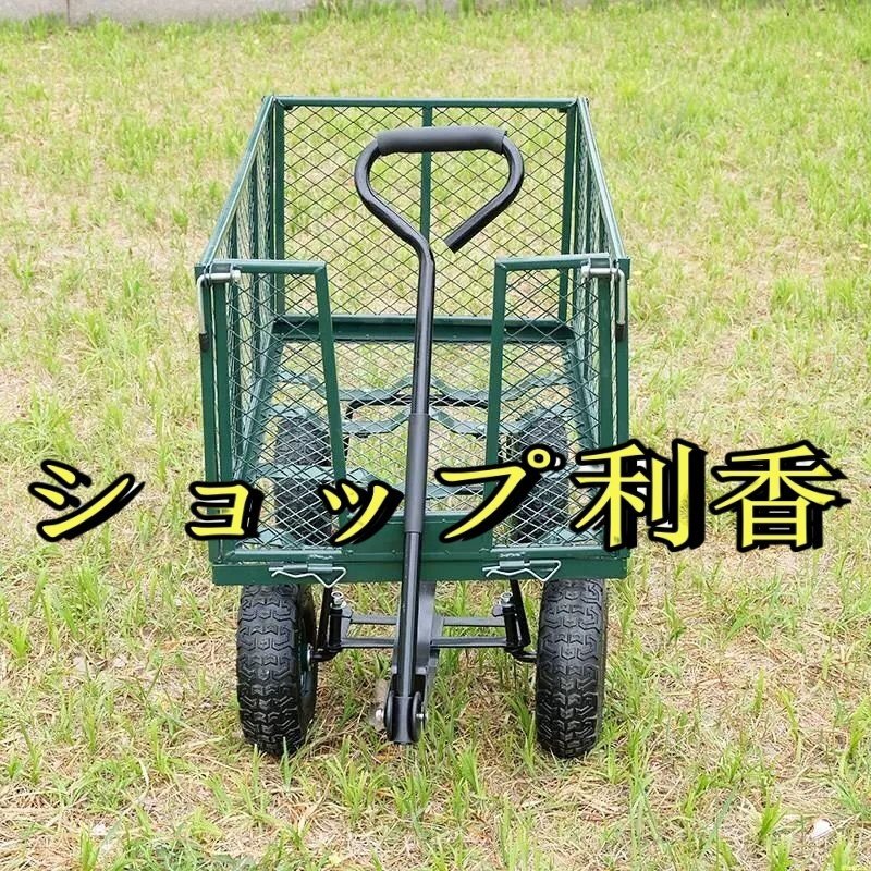 メッシュかご付き 台車 ガーデンカート 運搬車 手引き台車 多機能 空気圧タイヤ 取り外し可能な側面 耐荷重300kg 97*52*102CM