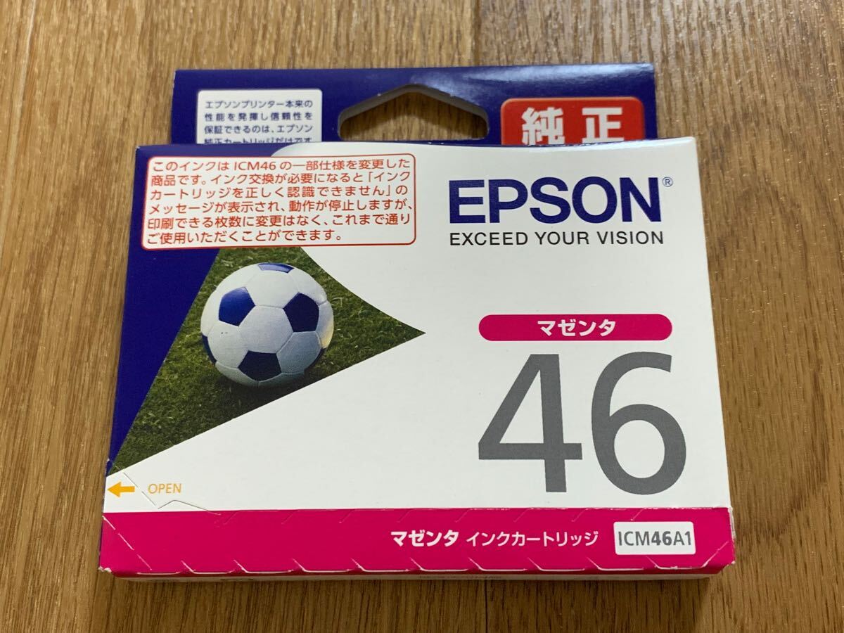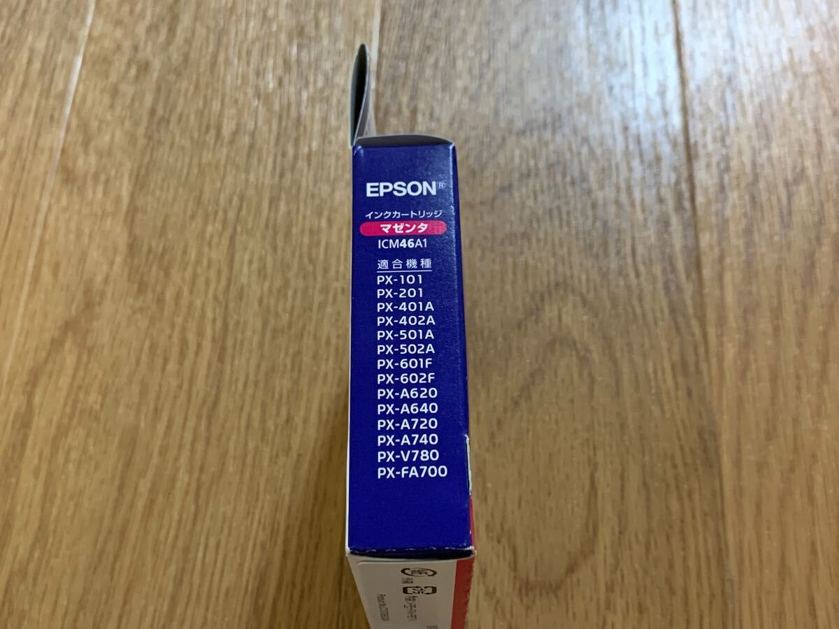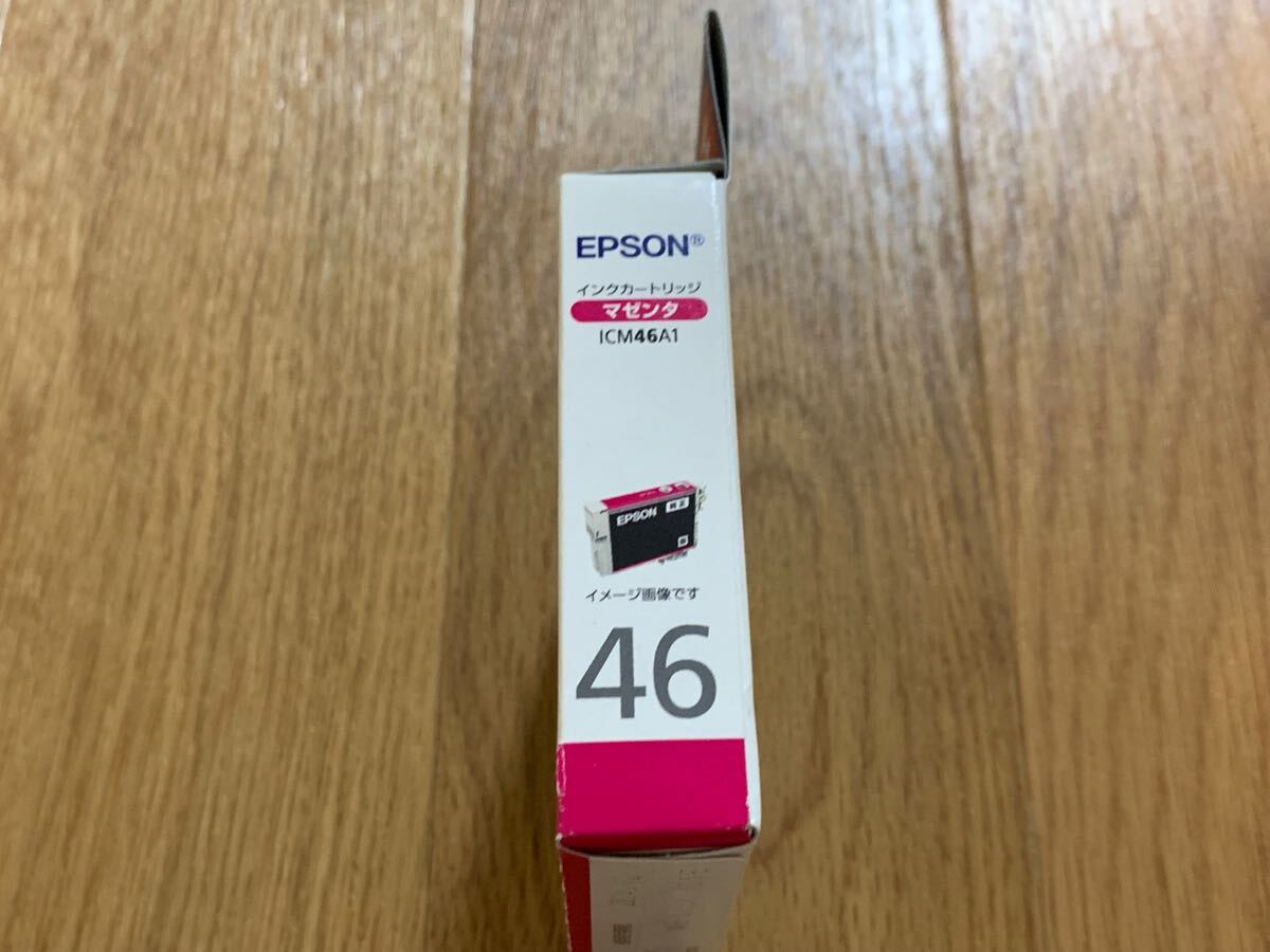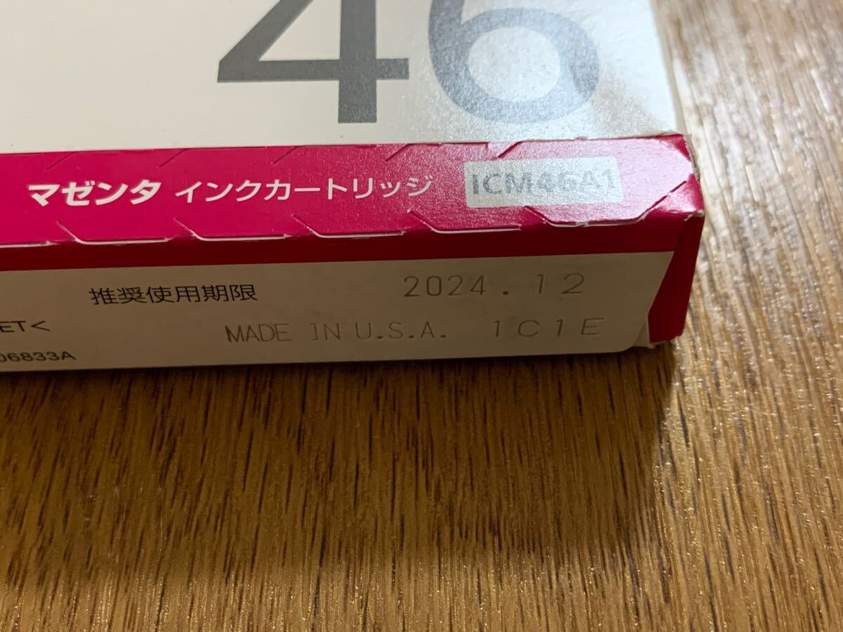 エプソン純正インクカートリッジICM46のマゼンタ1本となります。新品、未使用、未開封となります。購入したものの使用しませんでした。空調システムのある場所で基本保管しておりました。推奨使用期限が2024/12となります。ただちに使用できなくなるわけではありませんがお早目のご利用をおすすめいたします。カラリオプリンターPX101、PX-201、PX-401A、PX-402A、PX501A、PX502A、PX601F、PX-602F、PX-A620、PX-A640、PX-A720、PX-A740、PX-V780、PX-FA700などでご利用いただけます。