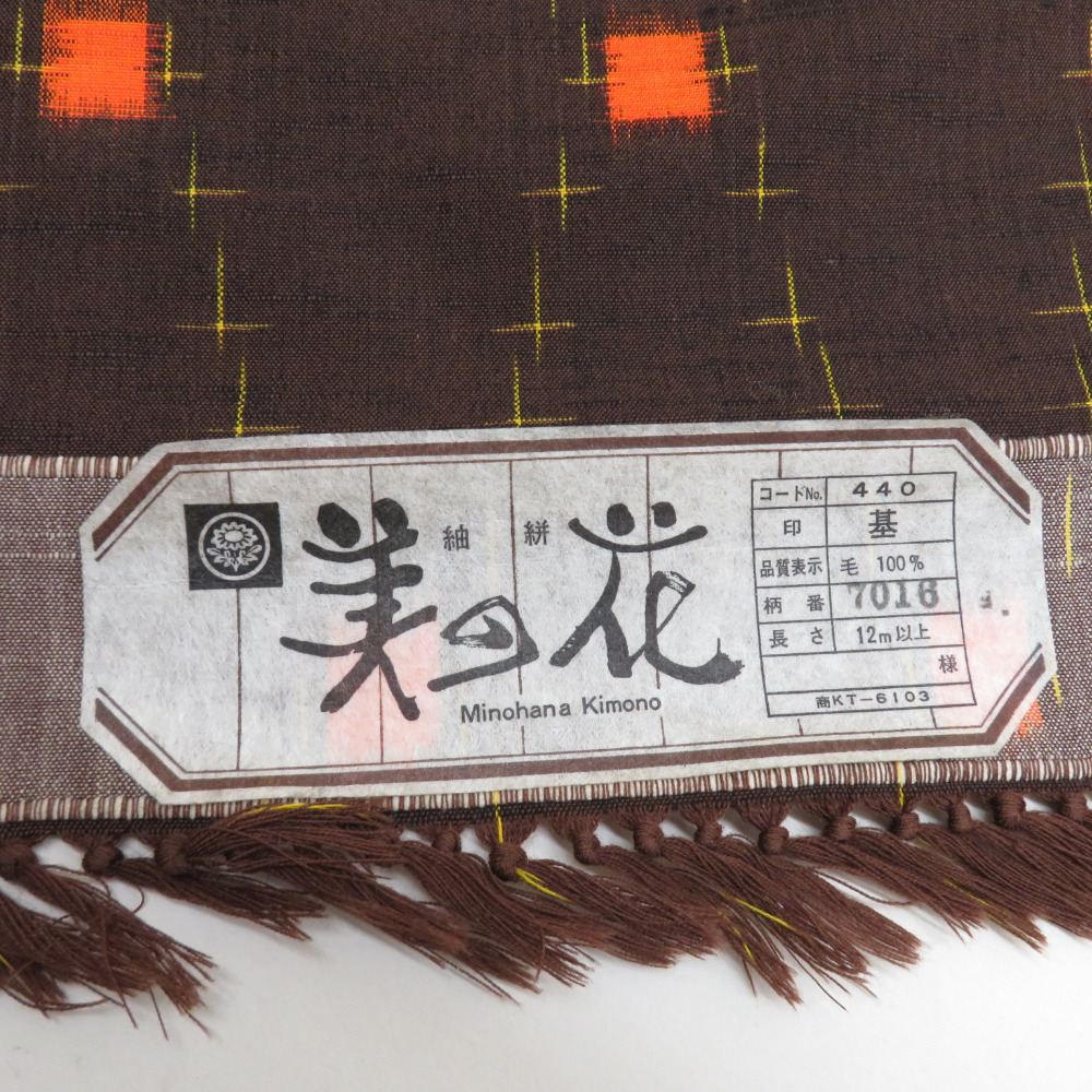 | 反物 着尺 ウール 立涌十字柄 織り文様 茶色 未仕立て 女性着物用 着物生地 ハンドメイド素材 長さ1200cm |