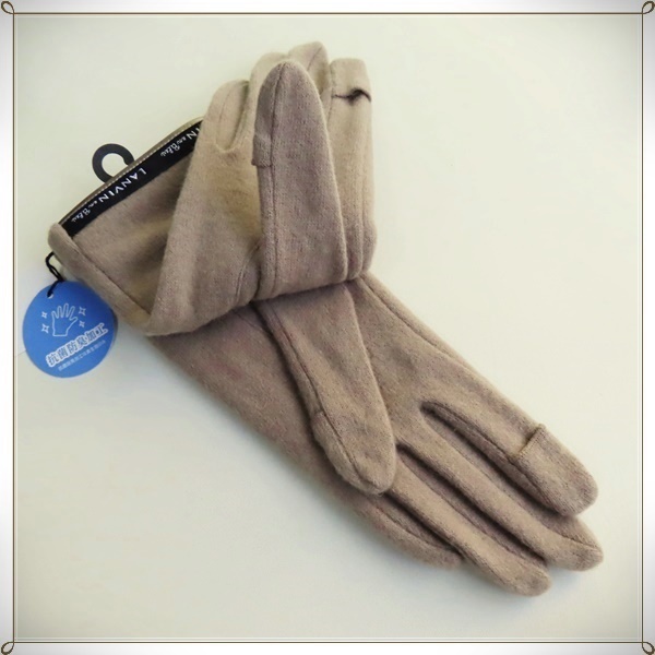 未使用 * ランバン * カシミヤ混 手袋 * 抗菌防臭加工 * スマートフォン対応 * ベージュ系
