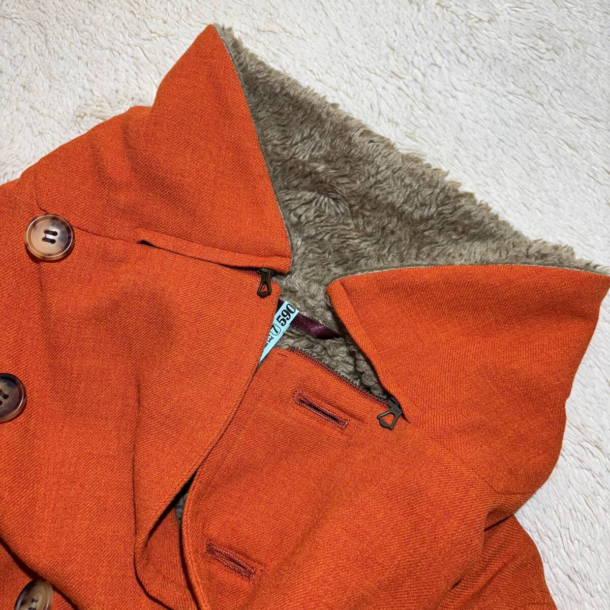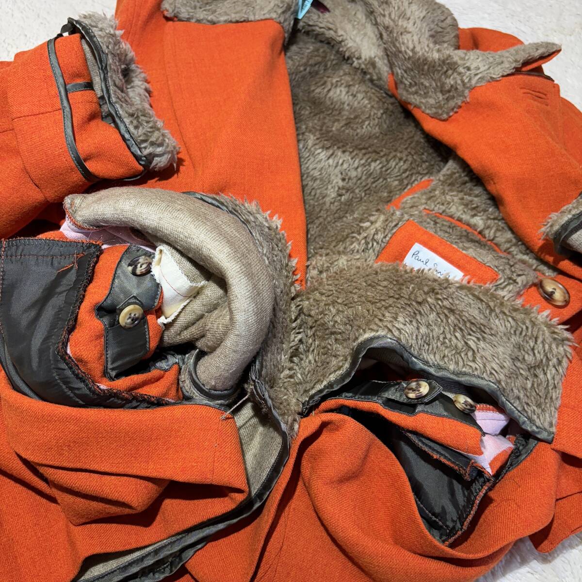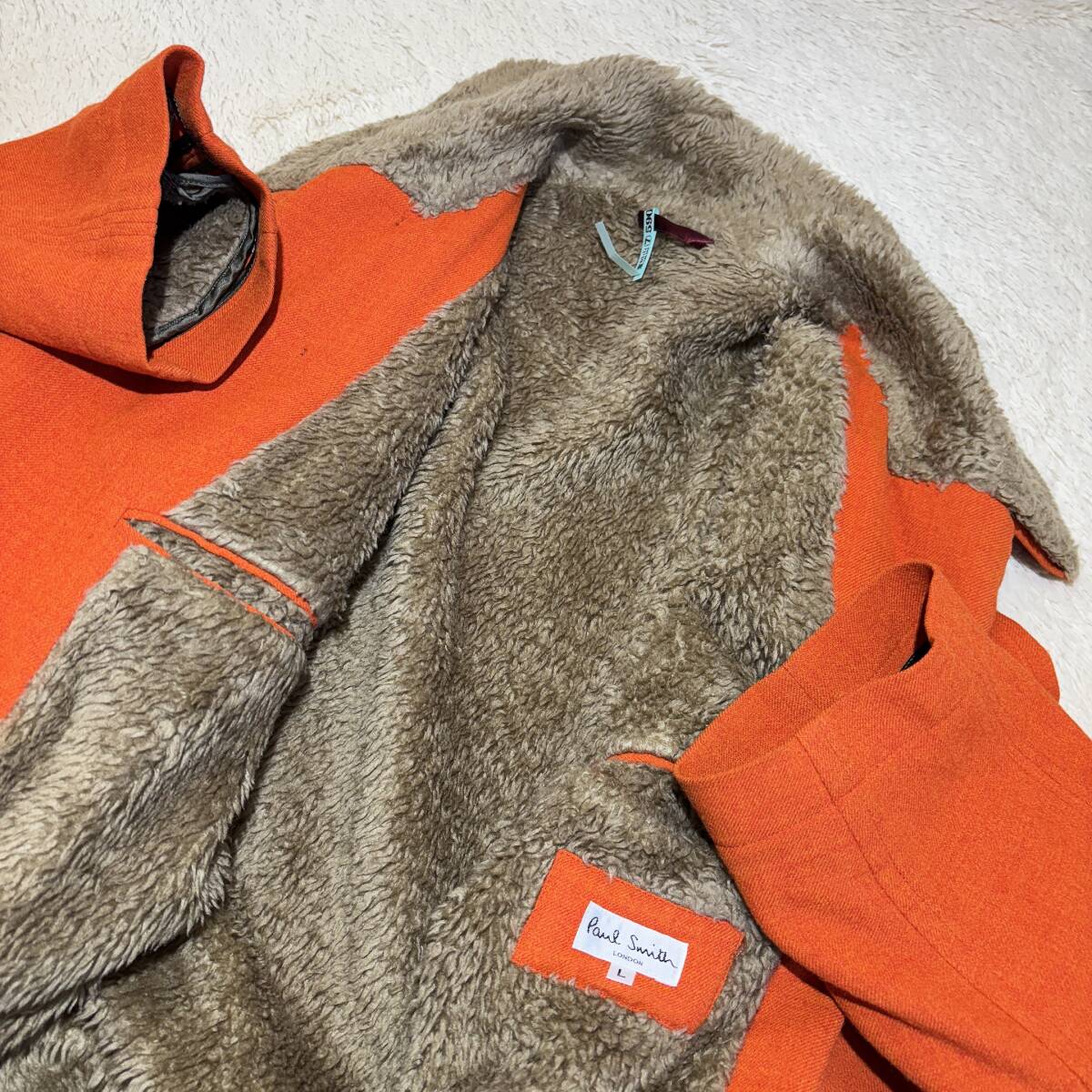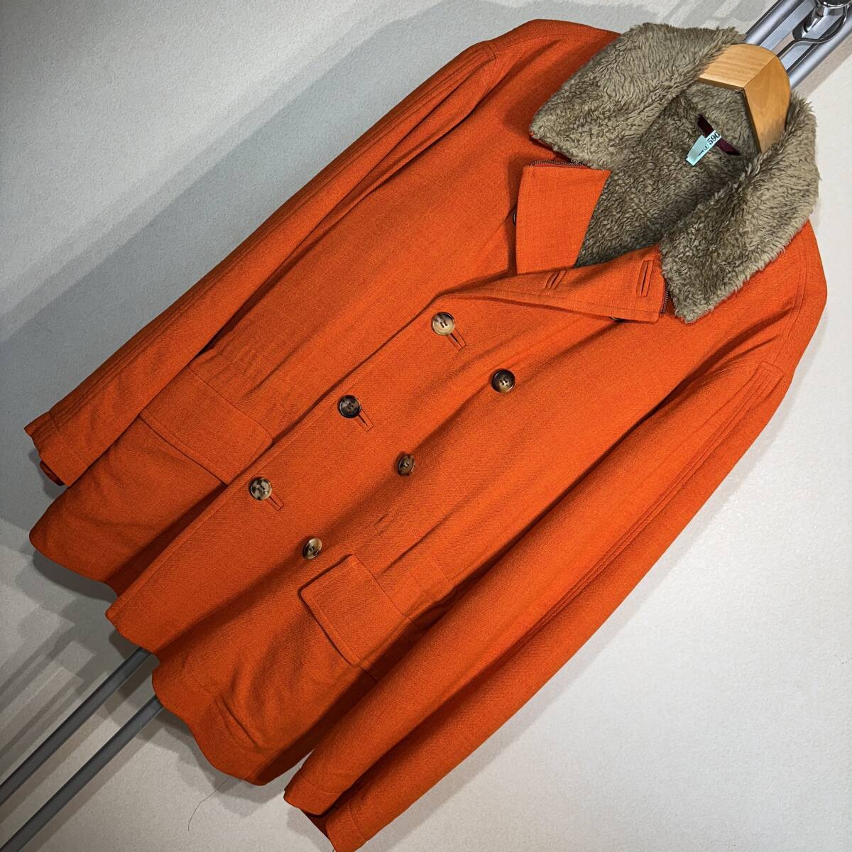 X337■ポールスミス★オレンジウール&ボア裏地★デザインコート■L | ||||||||||||||||||||