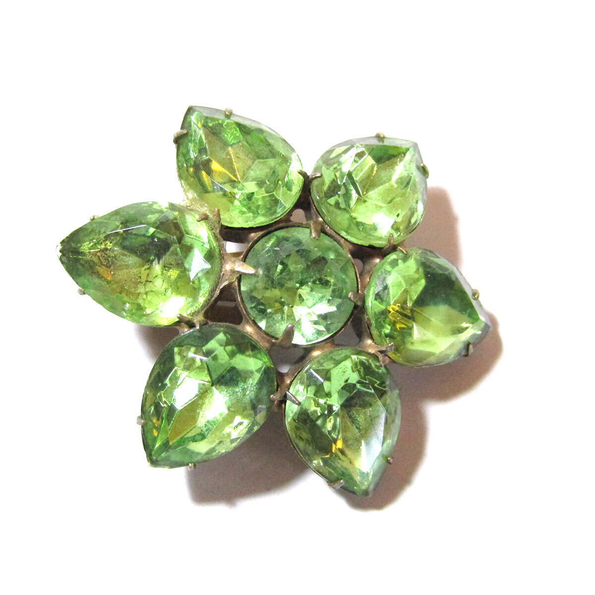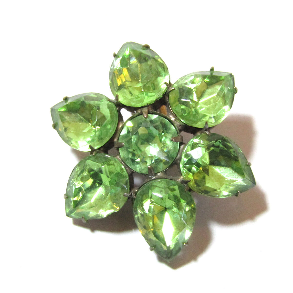 ライトグリーンの7つのラインストーンでフラワーを表現しております。