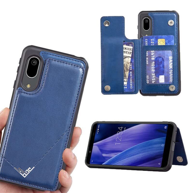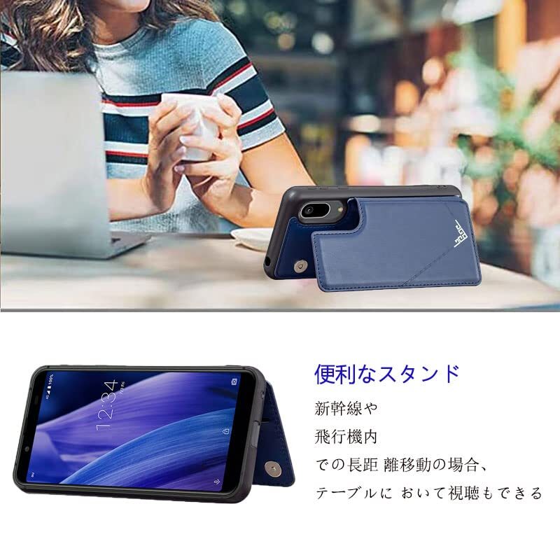 【Suumii】 手帳型 SHARP AQUOS sense3 lite/SH-02M / SHV45 / SH-RM12 / Android One S7用 背面 手帳 カードケース ランヤード付 背面カバー (紺)クオス センス3アンドロイド ワン S7 スマホケース サイドマグネット カード収納 横置き機能 PUレザー 財布型 携帯カバー sense3 basicE濃紺