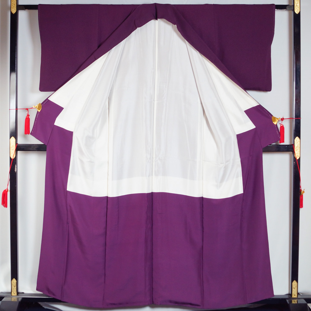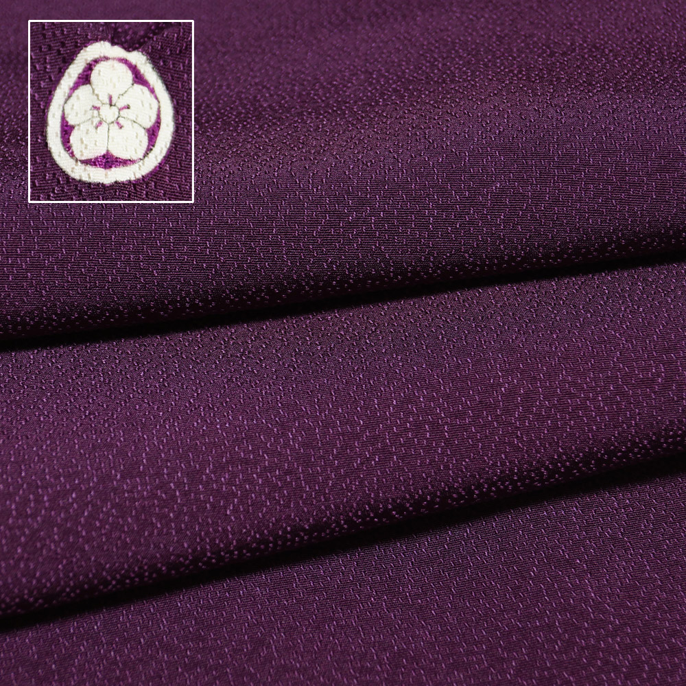 | 商品 説明 | 植物模様のような地紋が入った正絹ちりめん地を葡萄色系に染め上げた色無地です。丸に桔梗紋 一つ紋入りです。 |