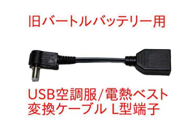 旧バートルバッテリー → USB A メス 変換ケーブル L型プラグ