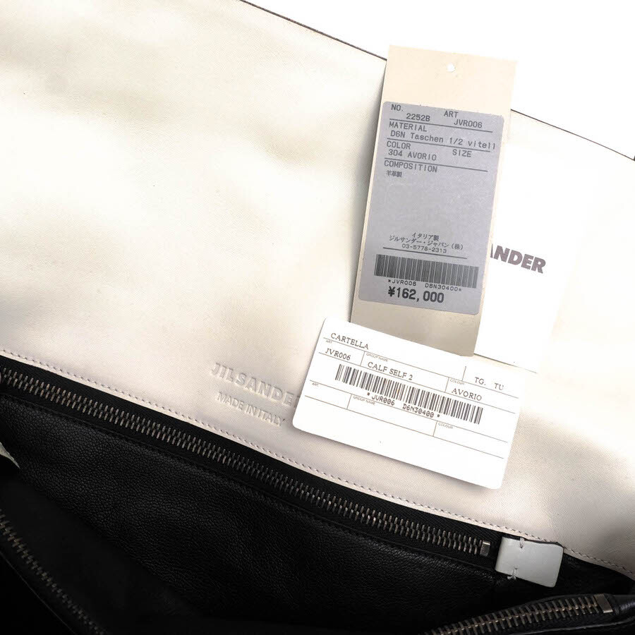 ◆ブランド名 Jil Sander ◆サイズ詳細 横幅 約36cm、縦幅 約45cm、マチ 約13cm ◆仕様 ファスナーポケット×2 ◆特徴 ユニセックス 男女兼用 ◆型番 JVR006 CALF SELF2 ◆新品時の希望小売価格 162000 ◆生産国 イタリア ◆素材 上質な革 レザー ◆素材詳細 羊革(シープスキン) ◆色 オフホワイト 白 ◆商品状態 中古品-良い ◆状態詳細 フラップ部分に、やや色焼けあり。大きなダメージはありません。 ◆備考 アイボリー |