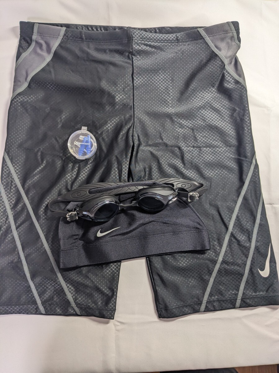 水着2XLサイズ、ゴーグル、帽子の3点は全てナイキ製となっております。