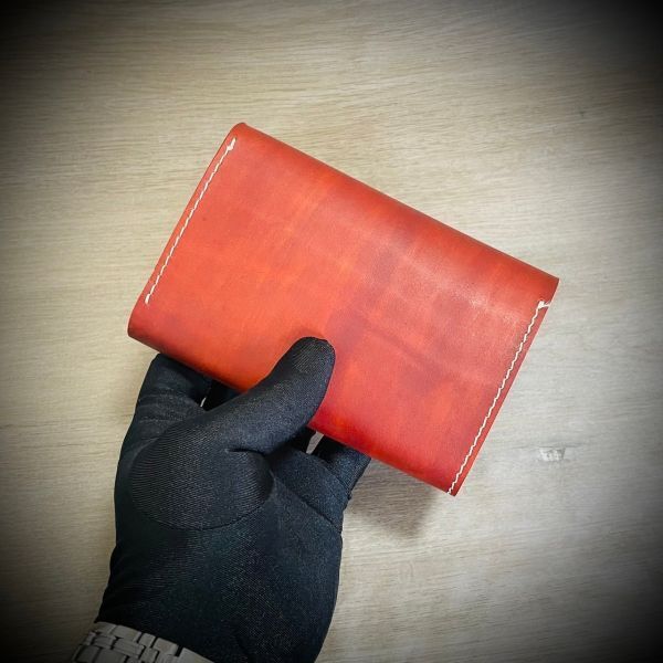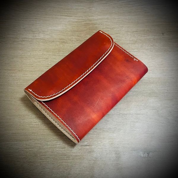 ヌメ革の三つ折りタイプのミドルウォレット。