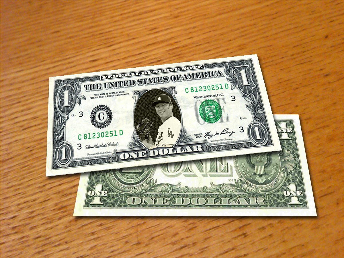 ロサンゼルス・ドジャース プロ野球選手【 山本由伸 】の本物の1ドル札 になります!★