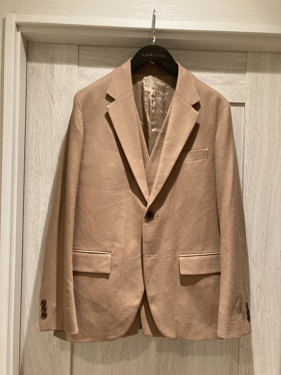 ★定価6万★ ~ 日本製 生地感 カシミヤ ~ united arrows & sons ウール 100% レイヤード テーラード ジャケット キャメル ベージュ size XL