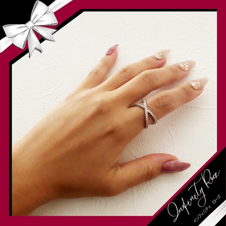 (R018S)18号 シンプル大人ワイドクロスクリスタルリング  高価爪留め指輪