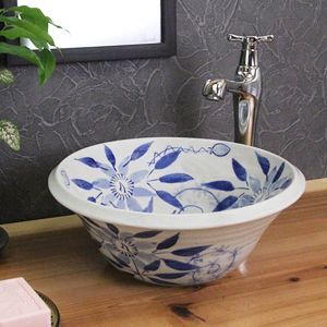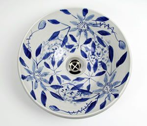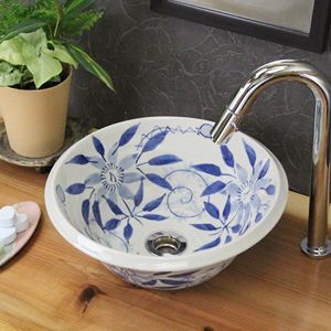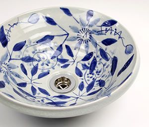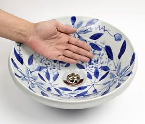 | 商品名 | 信楽焼 テッセン絵ソリ型手洗い鉢(小型) |