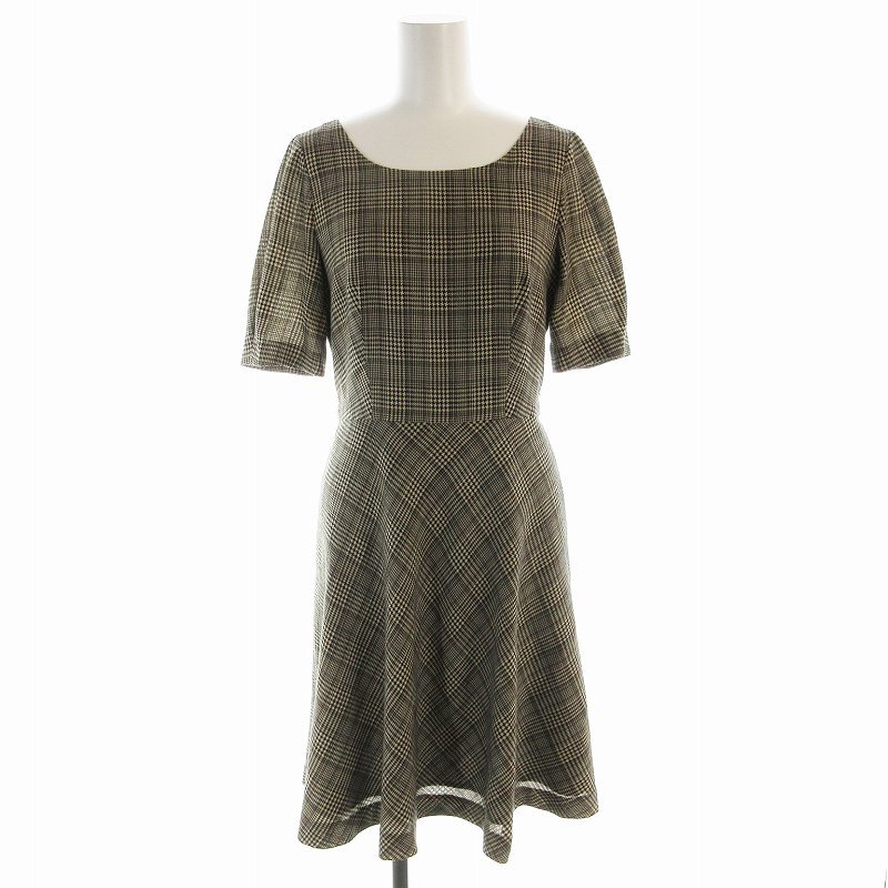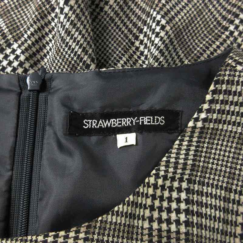 ストロベリーフィールズ STRAWBERRY-FIELDS ワンピース ミニ 千鳥柄 半袖 1 S ベージュ /EE レディース